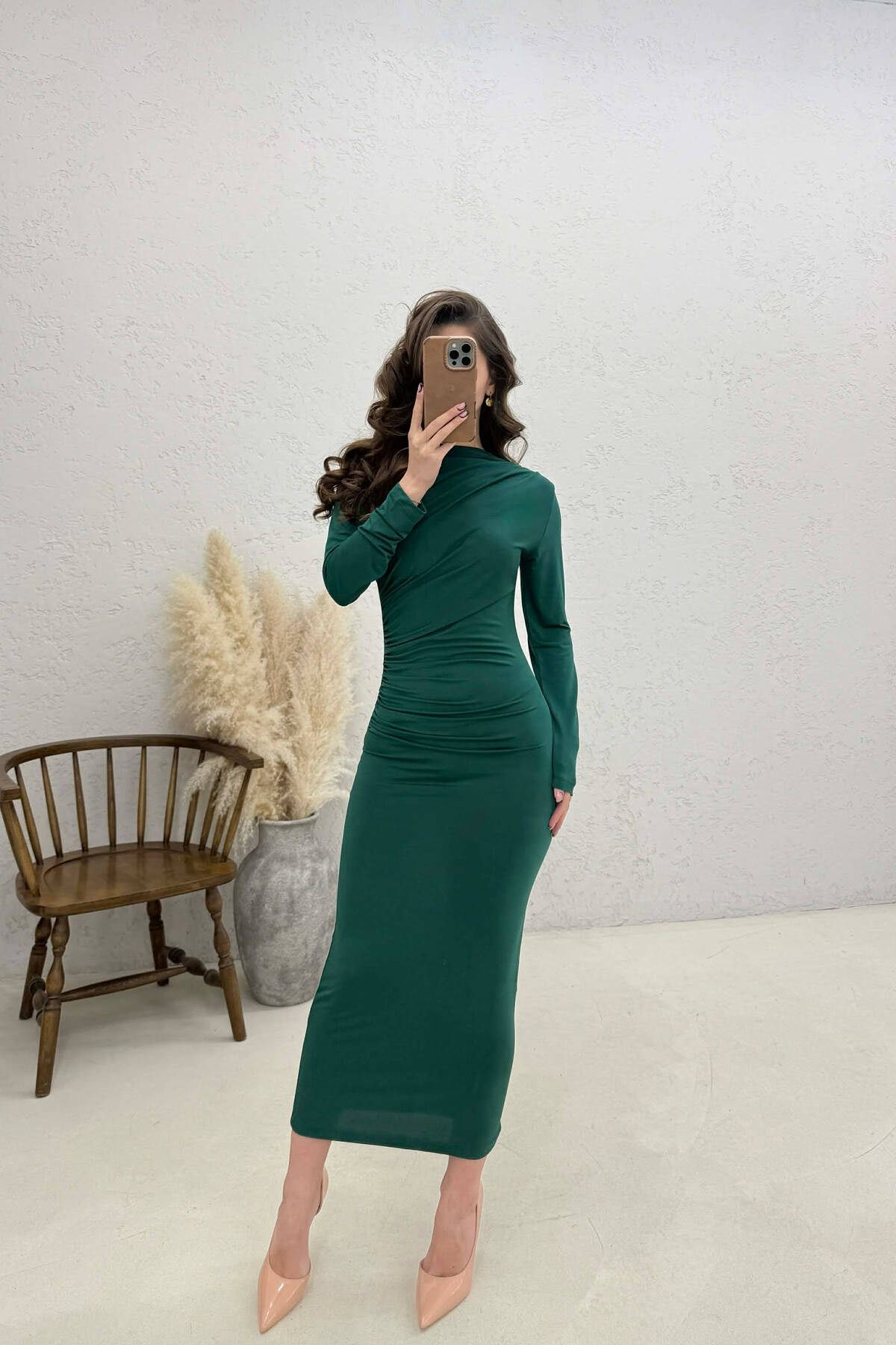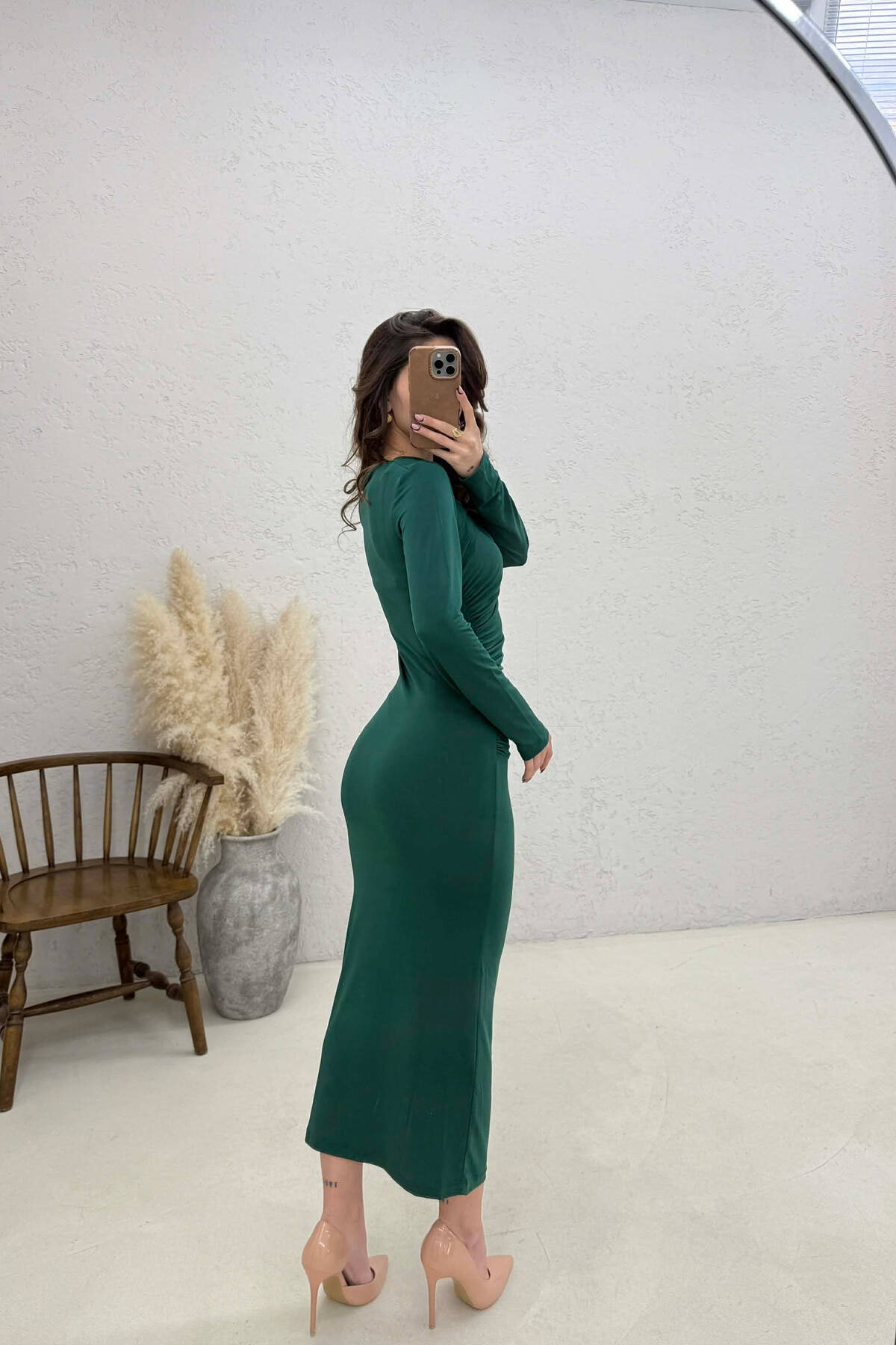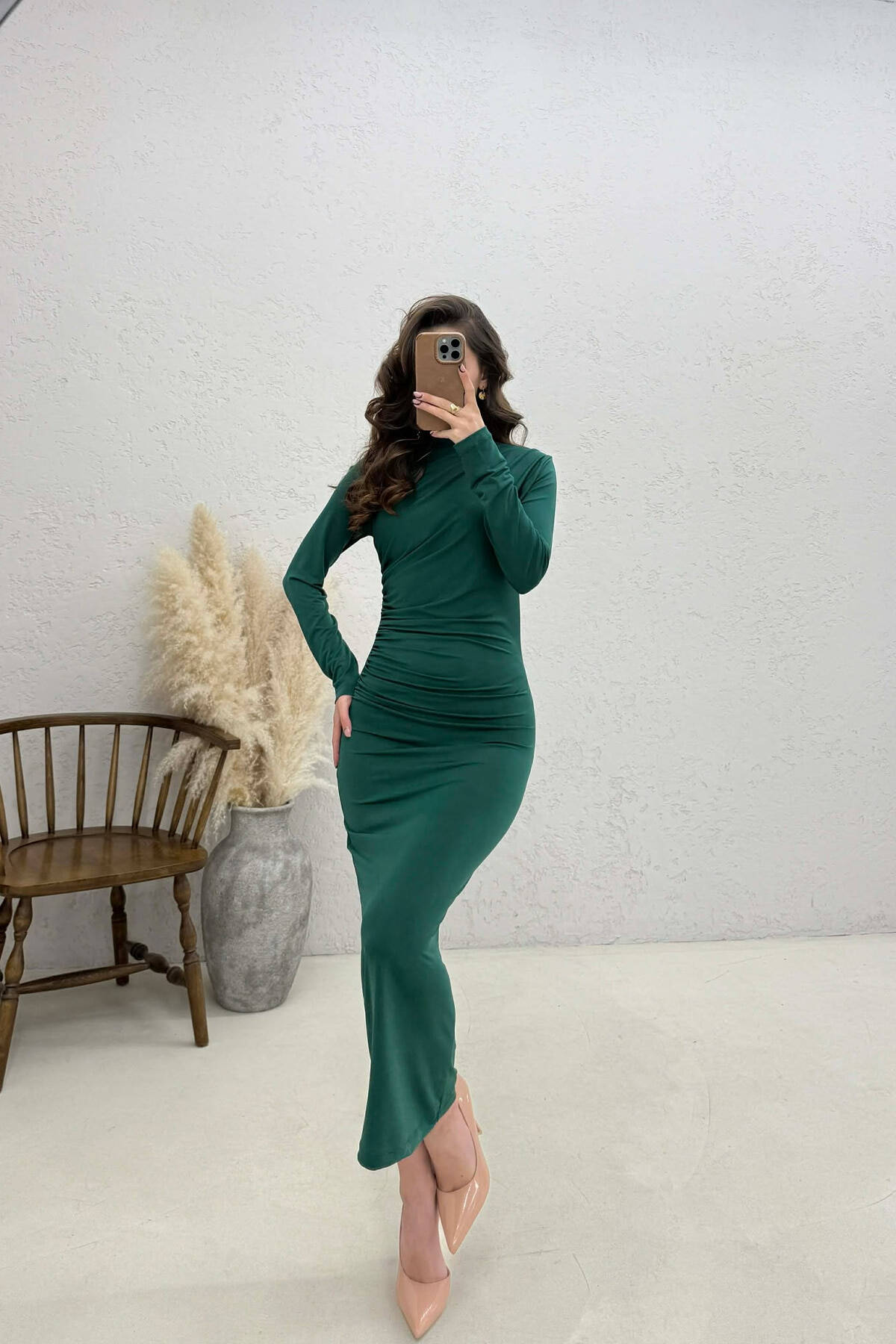 ONE COLOR LONG SLEEVE WOMAN DRESS GREEN/JESHILE