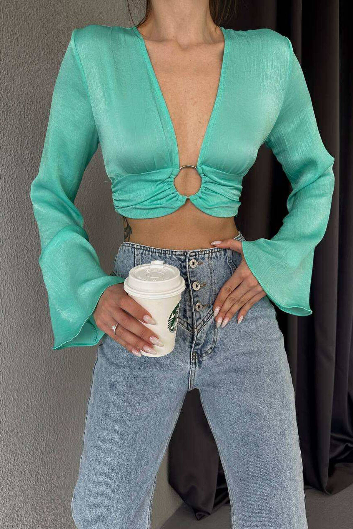 SHINY V NECK WOMAN CROP TOP GREEN/JESHILE
