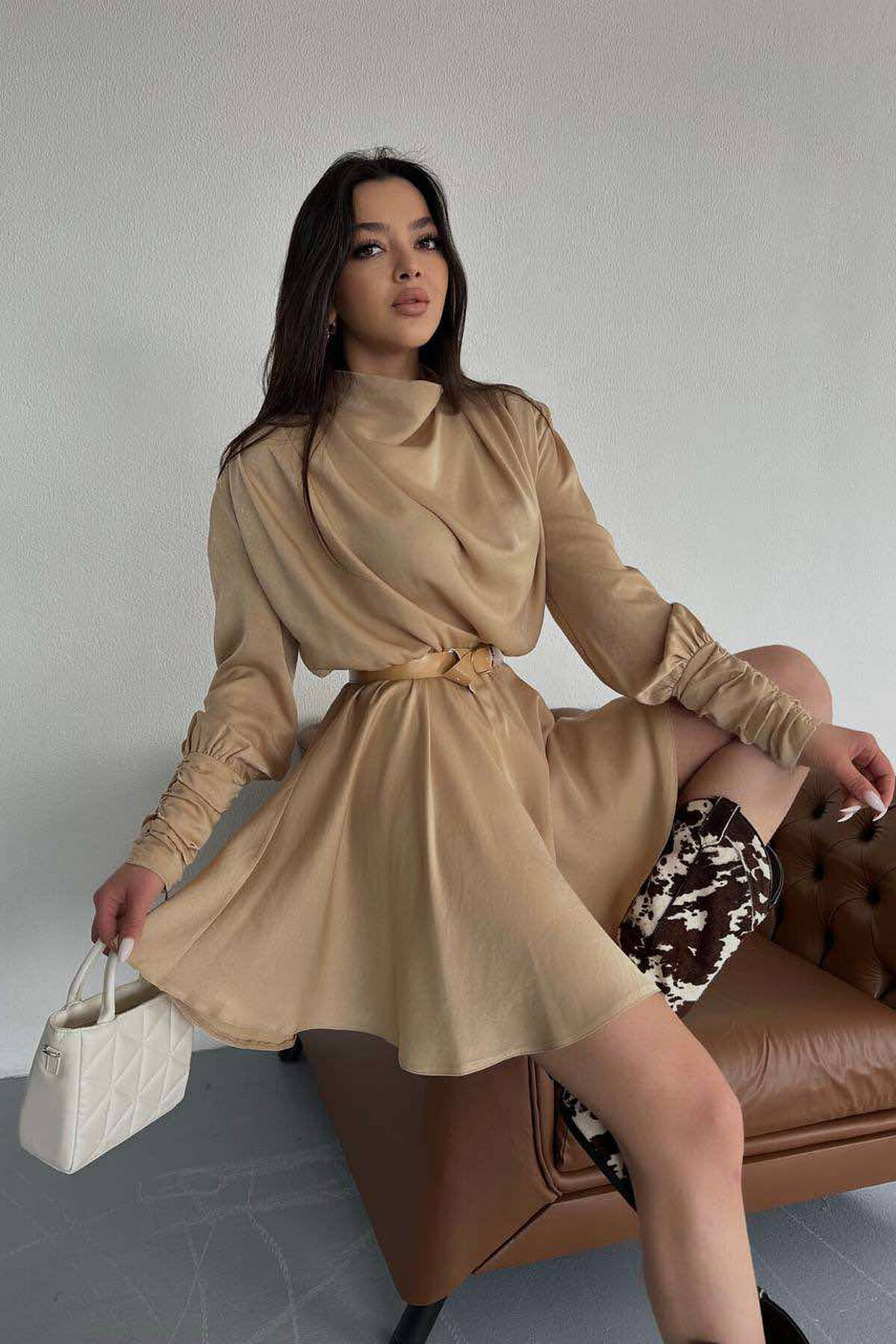 Notify me when its in stockLong Sleeve One Color Dress For Women In Beige