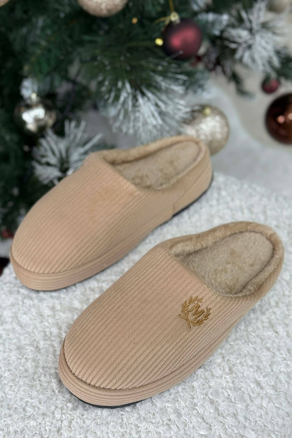 ONE COLOR M SYMBOL TEDDY LINED MAN SLIPPERS BEIGE/BEZHE