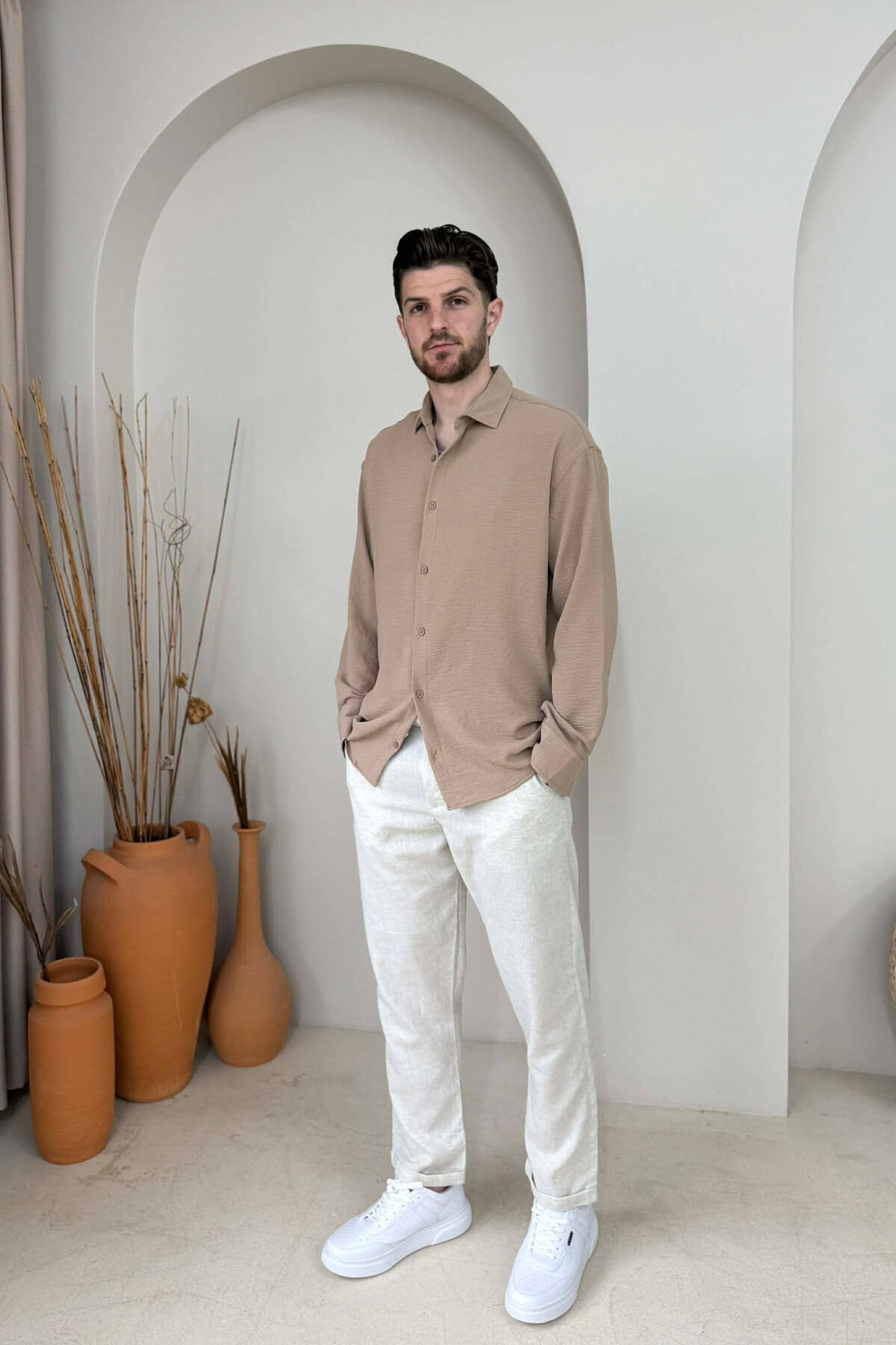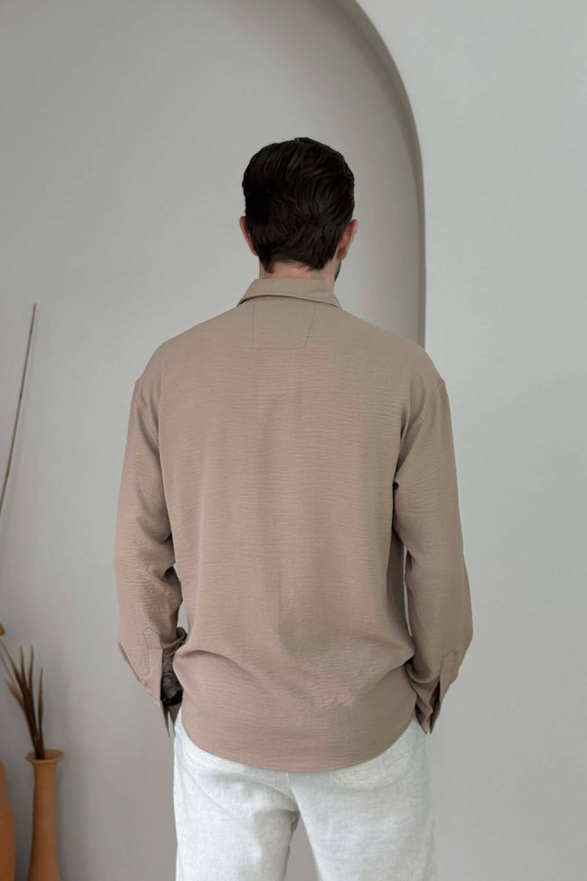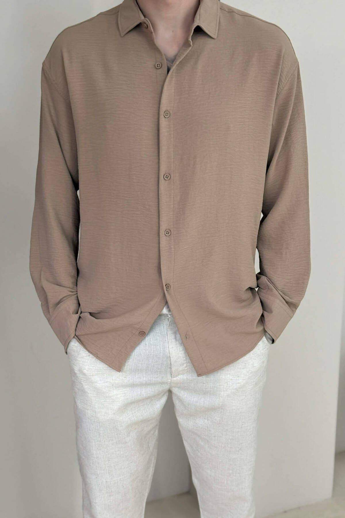 KEMISHE NJE NGJYRESHE ME TEKSTURE PER MESHKUJ NE NGJYRE KAFE TE ZBARDHUR