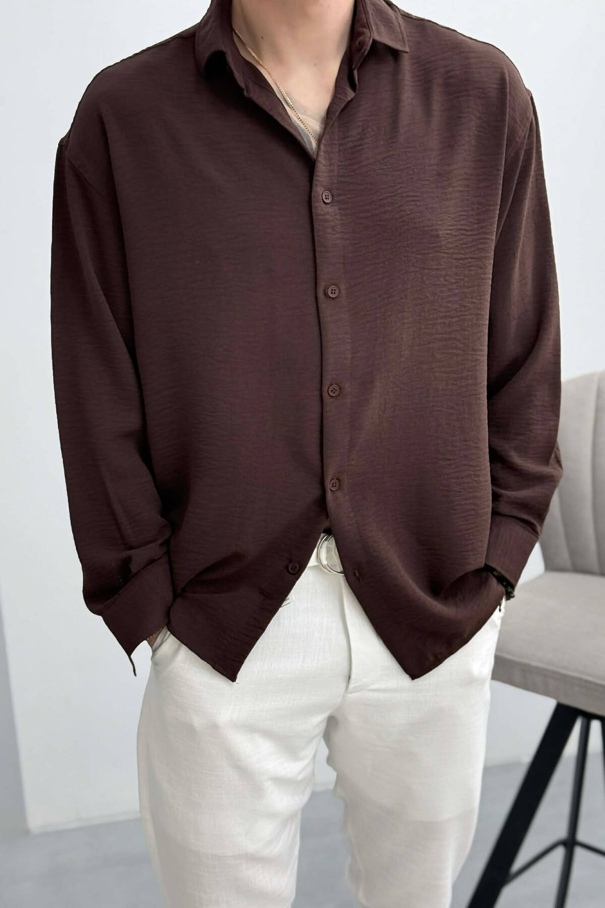 SIMPLE LONG SLEEVE MEN SHIRT BROWN/KAFE