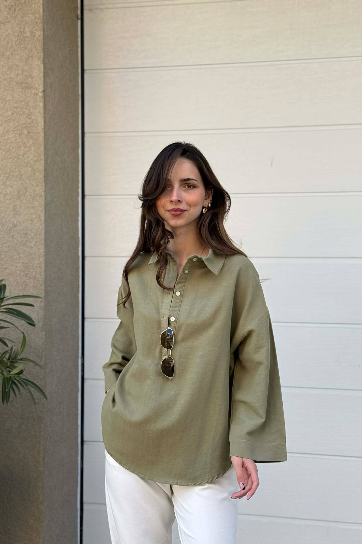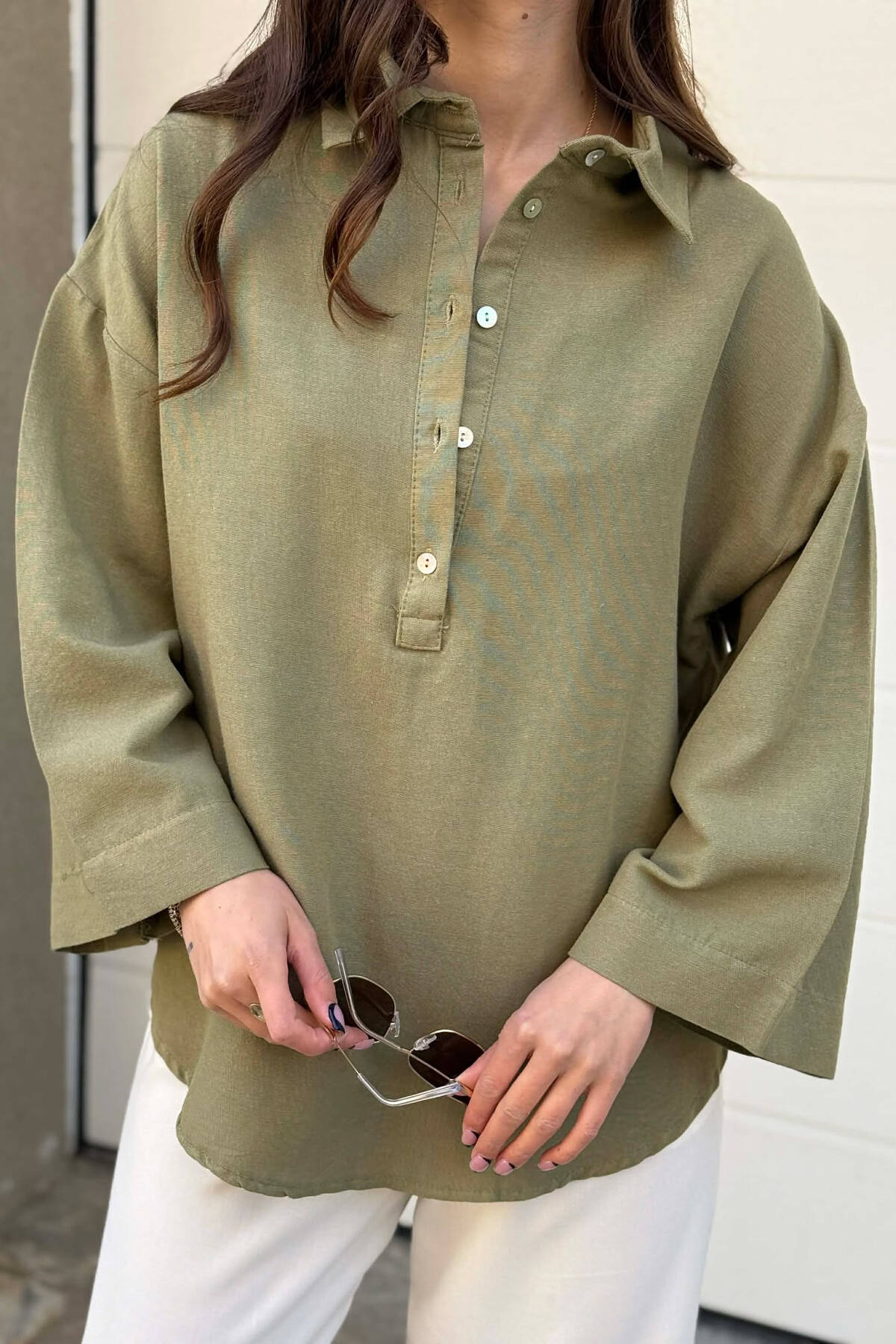 ONE COLOR NECK BUTTONS WOMAN SHIRT OLIVE/ULLI