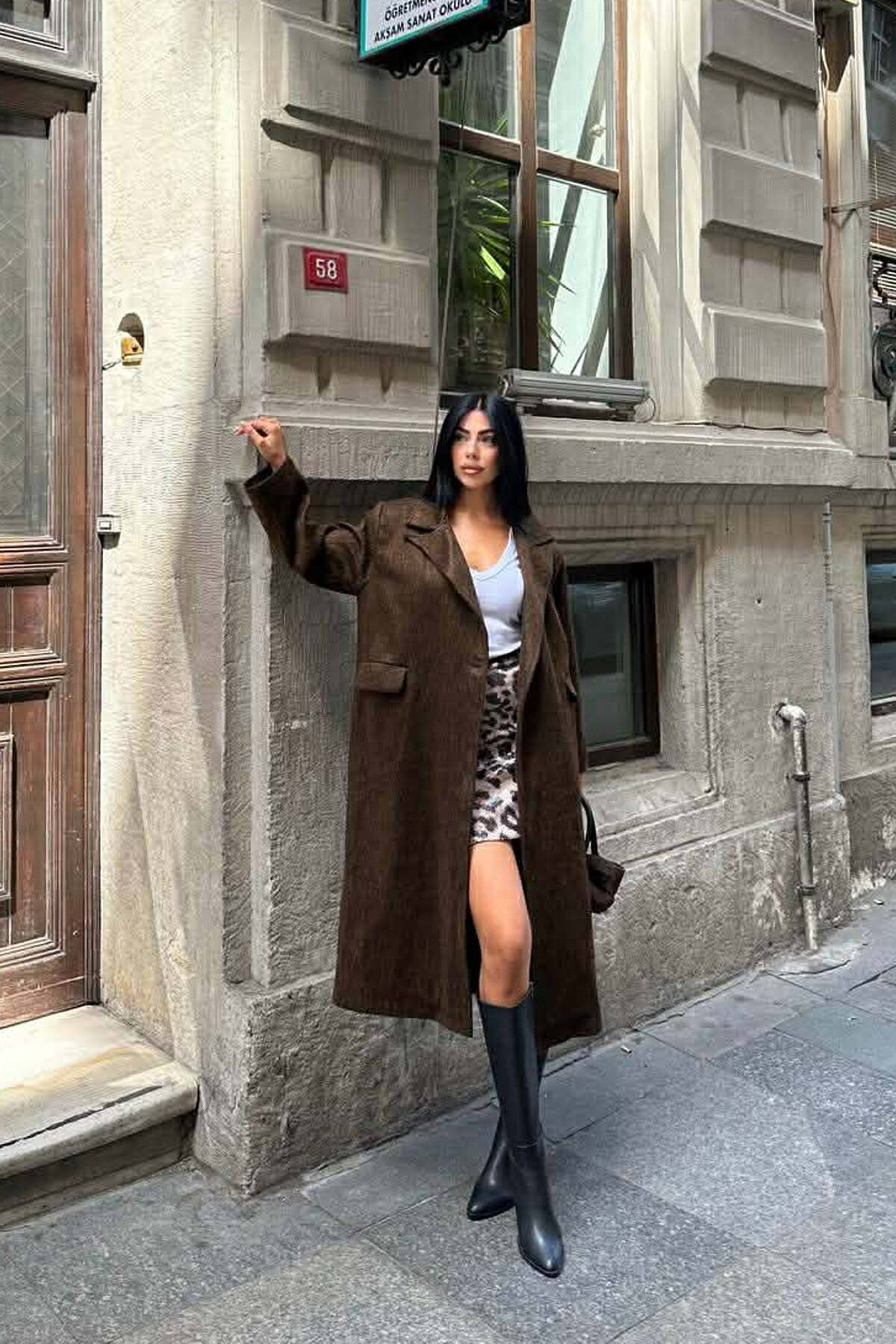 ONE COLOR ONE BUTTON FUR LONG WOMAN COAT BROWN/KAFE