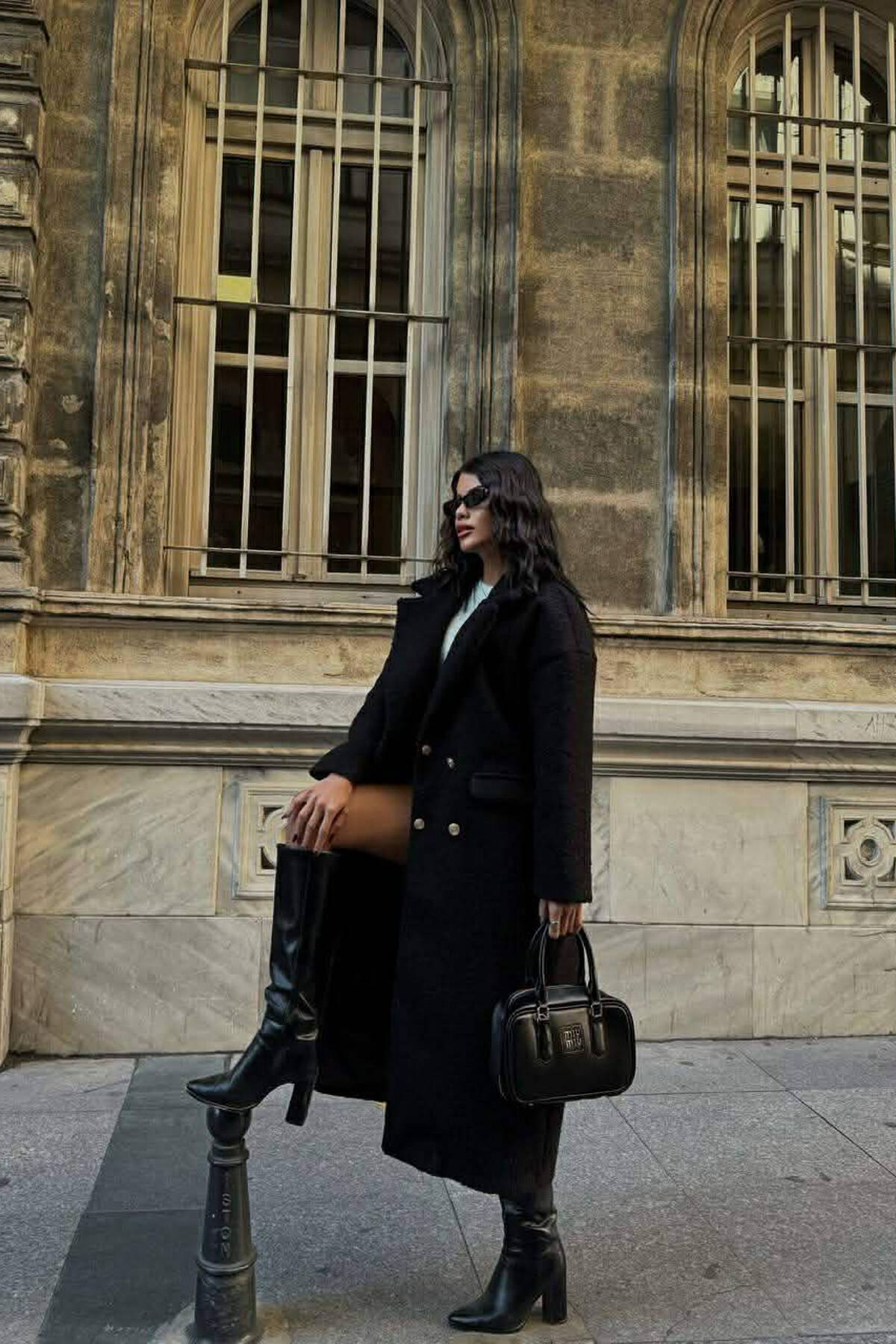 ONE COLOR OVERSIZE GOLD BUTTONS WOMEN COAT BLACK/ E ZEZE