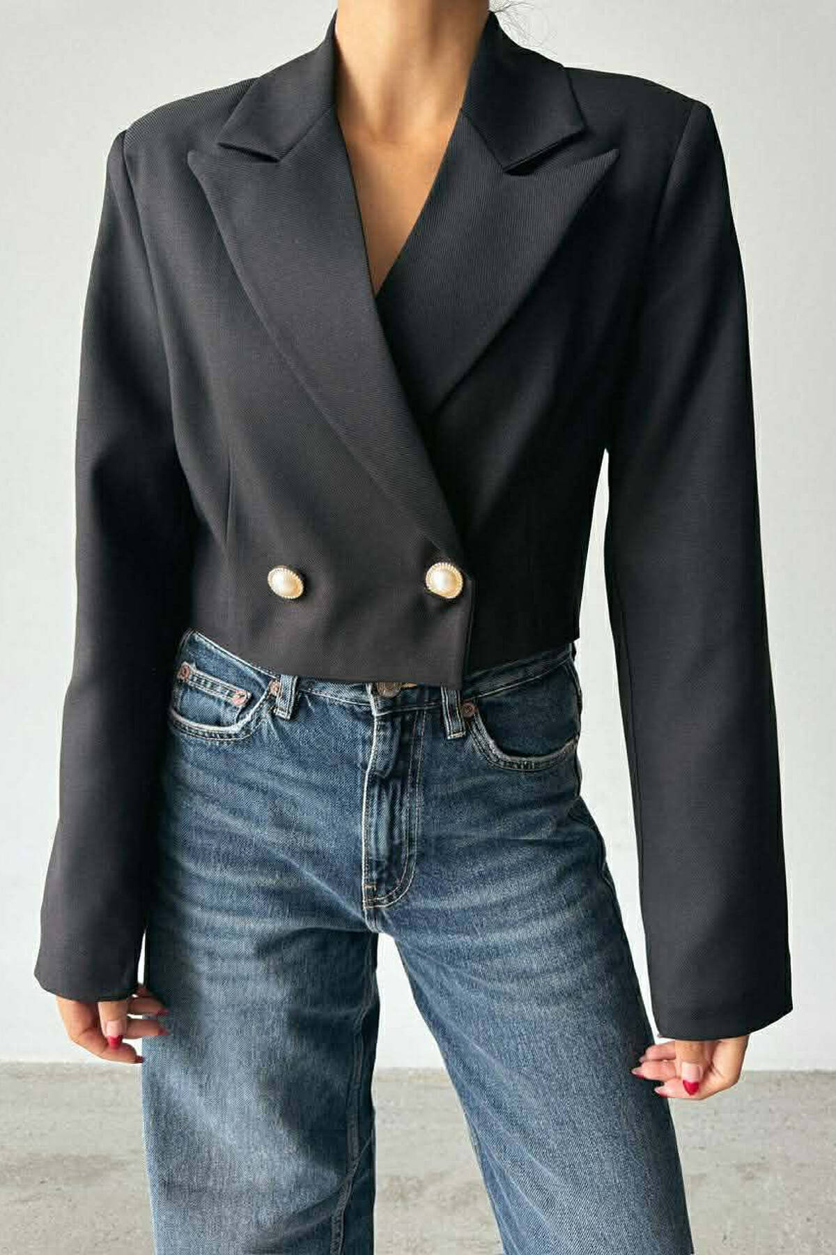 ONE COLOR CROPPED JACKET+SKIRT WOMEN SET BLACK/ E ZEZE