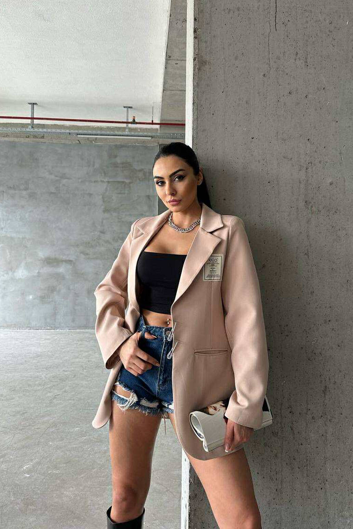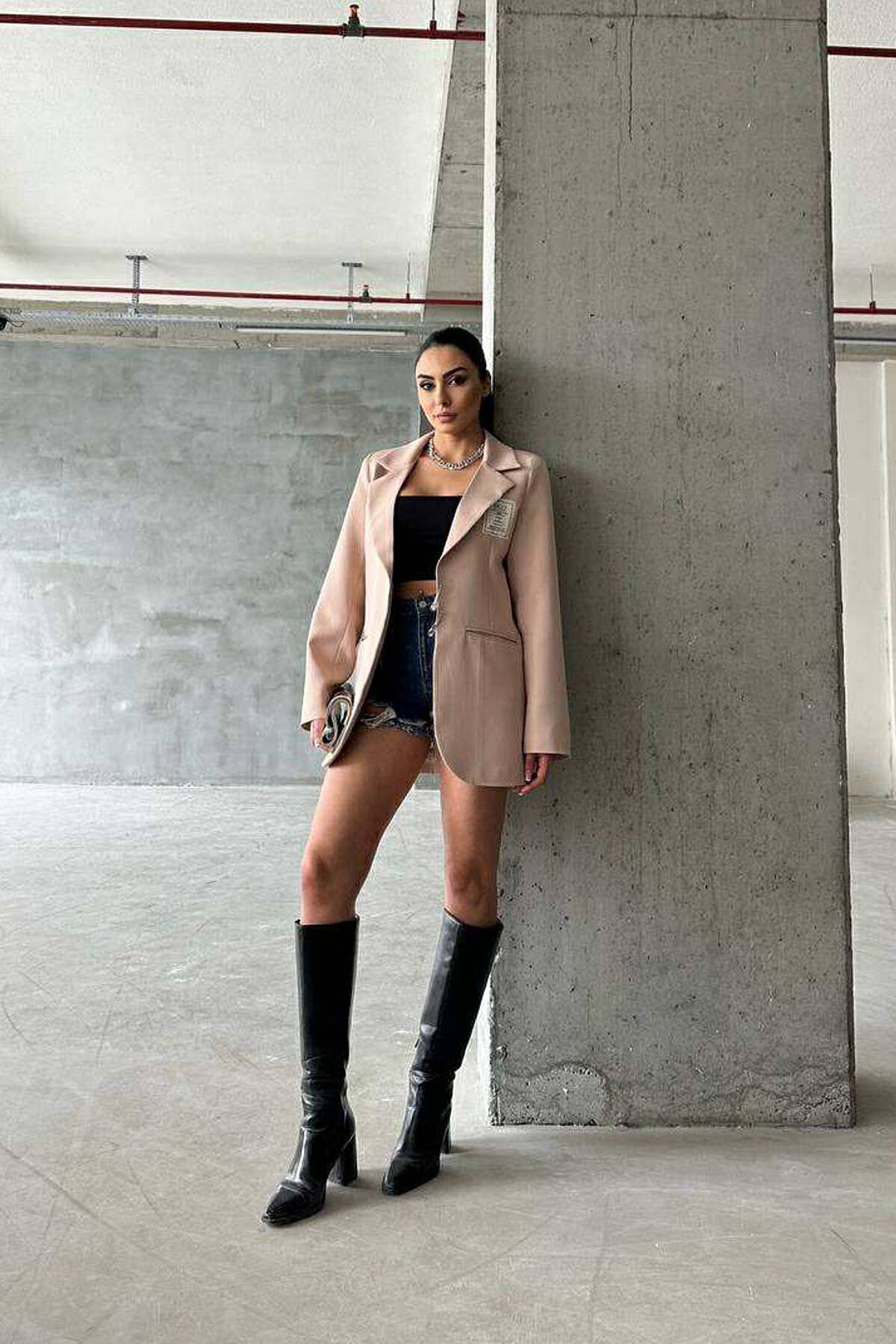 ONE COLOR PIN DETAILS WOMEN JACKET BEIGE/BEZHE