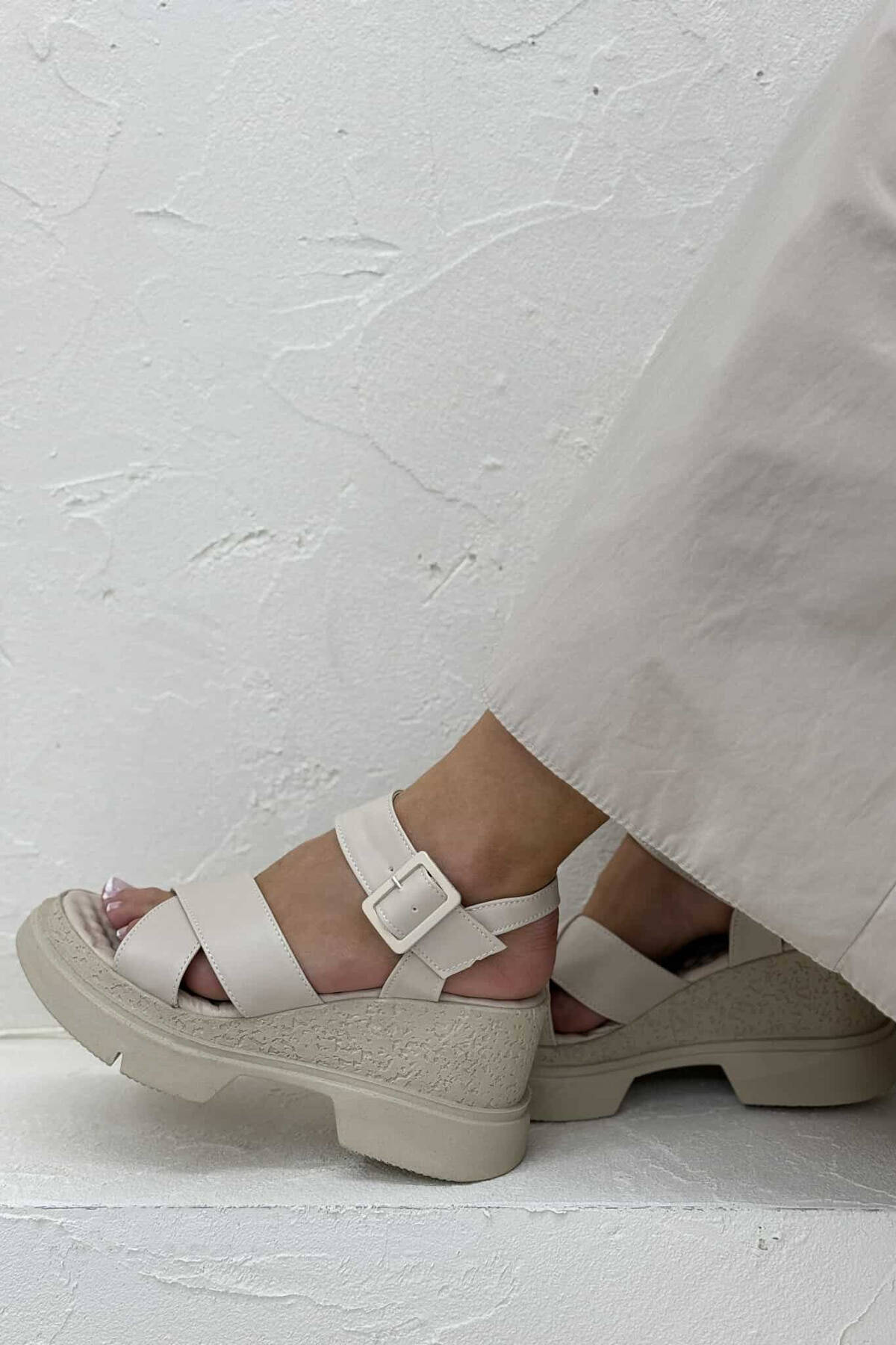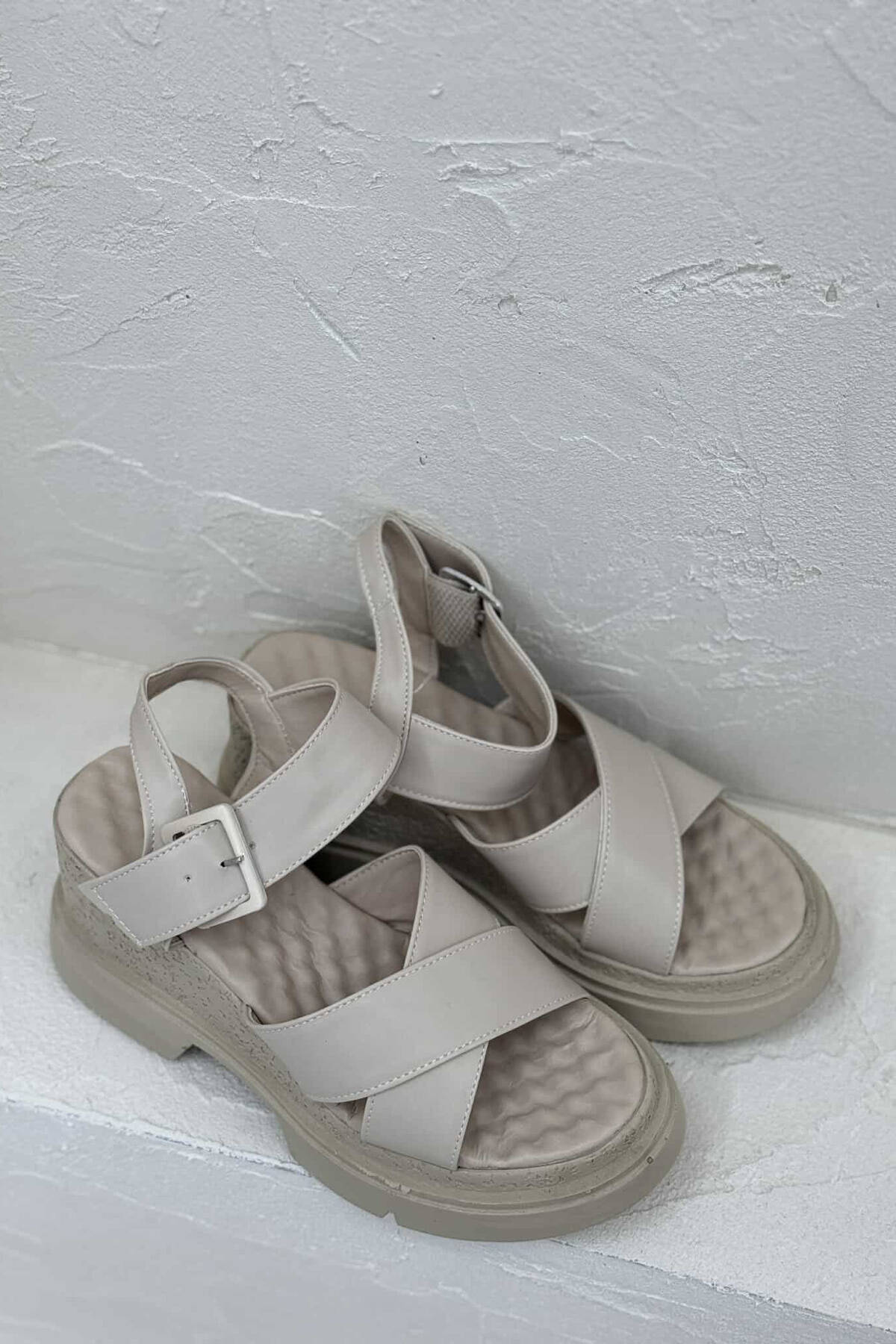 ONE COLOR PLATFORM WOMEN SANDALS BEIGE/BEZHE