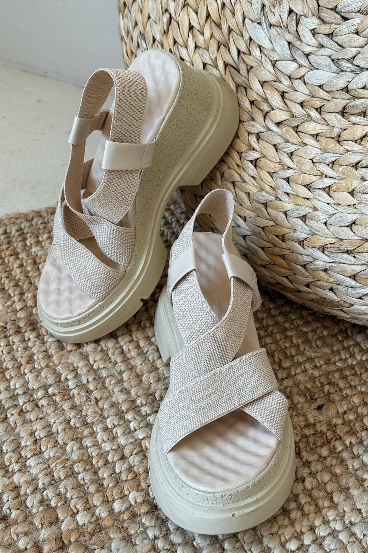 ONE COLOR PLATFORM WOMEN SANDALS BEIGE/BEZHE