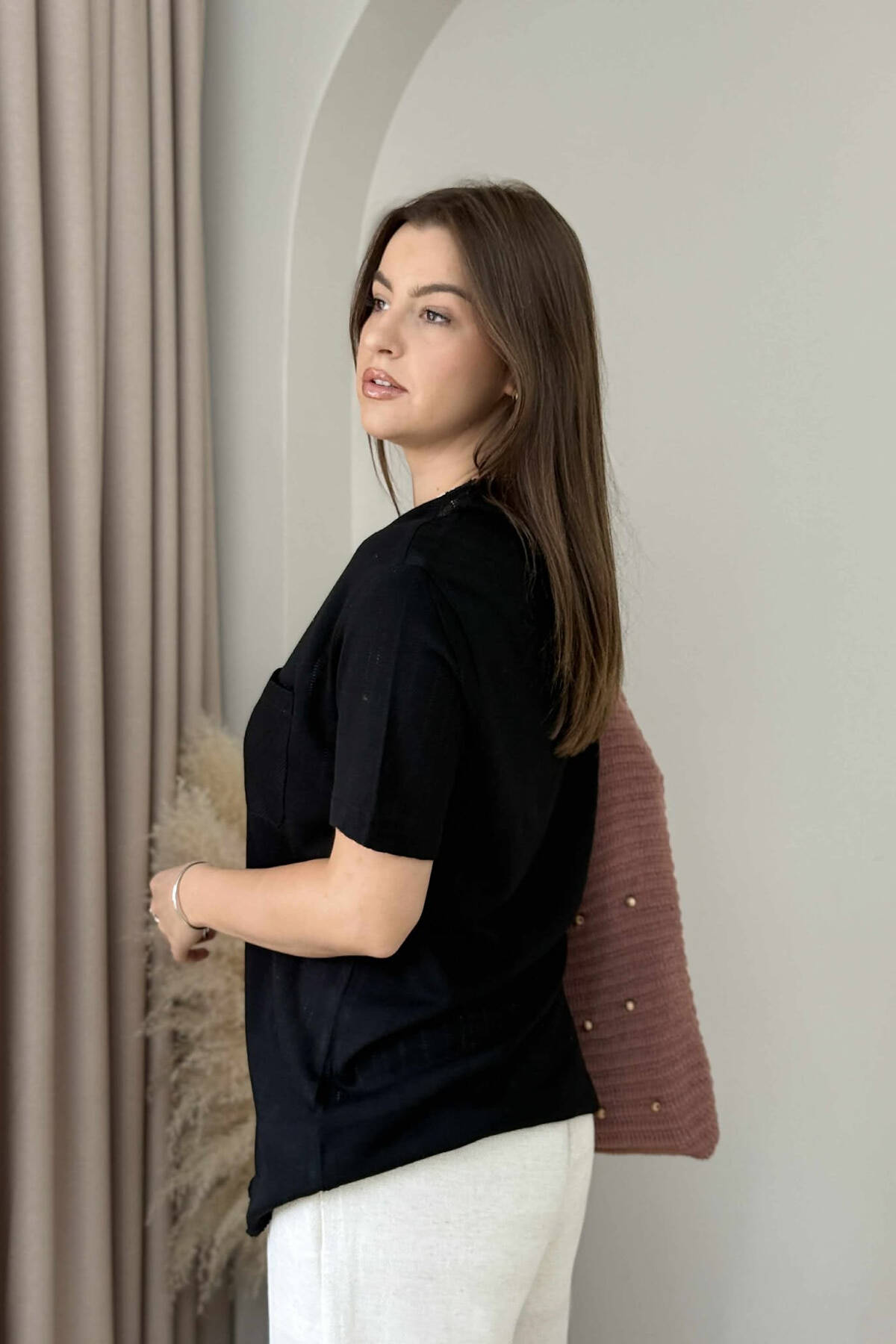 ONE COLOR POCKET DETAIL WOMEN T-SHIRT BLACK/ E ZEZE