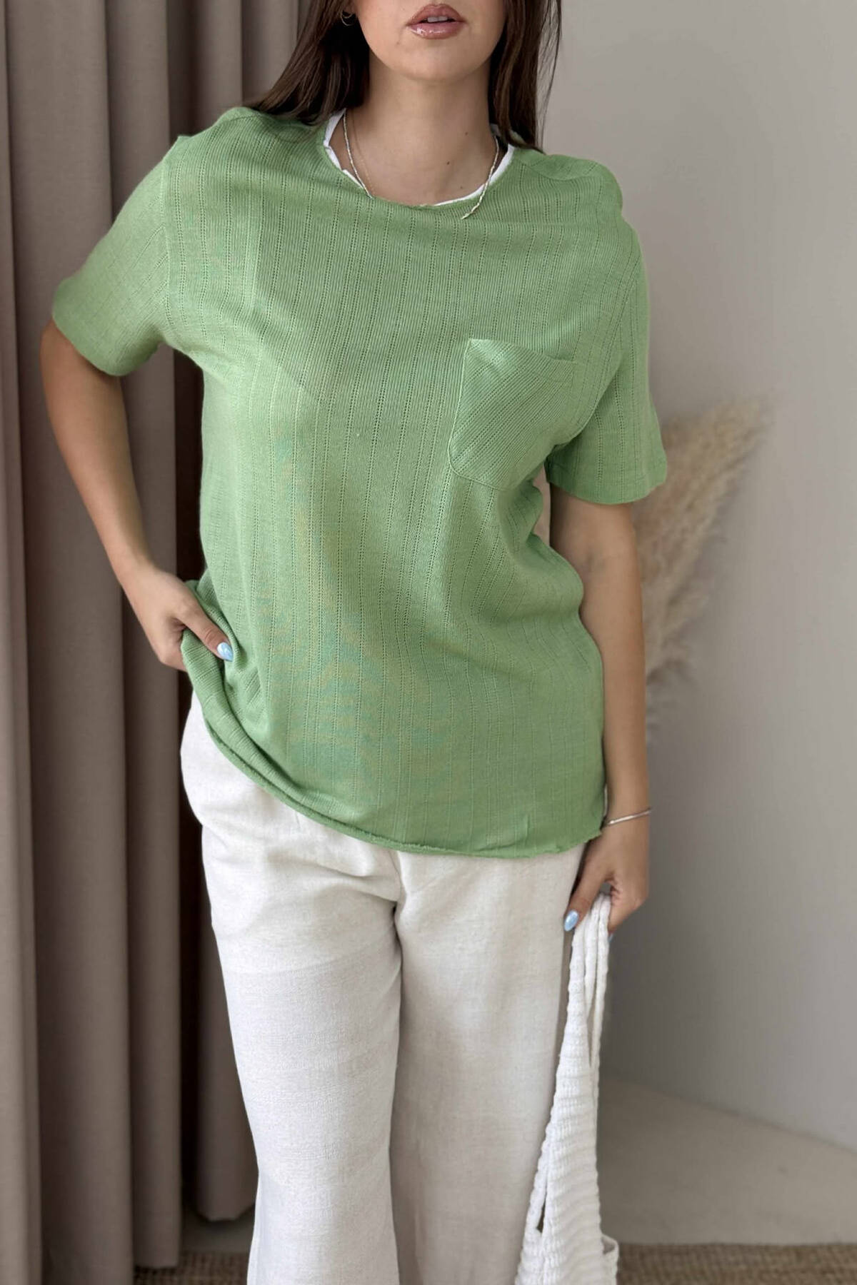 ONE COLOR POCKET DETAIL WOMEN T-SHIRT MINT/MENTE