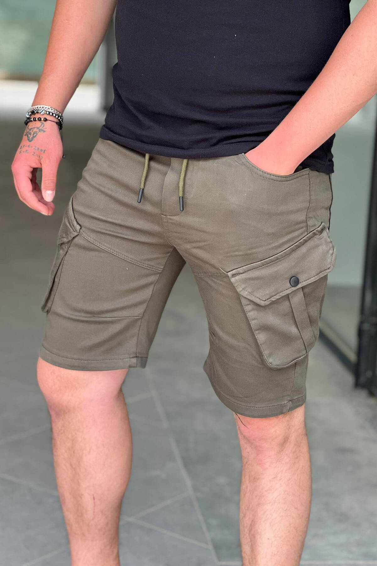 ONE COLOR POCKET MEN CARGO SHORTS BROWN/KAFE