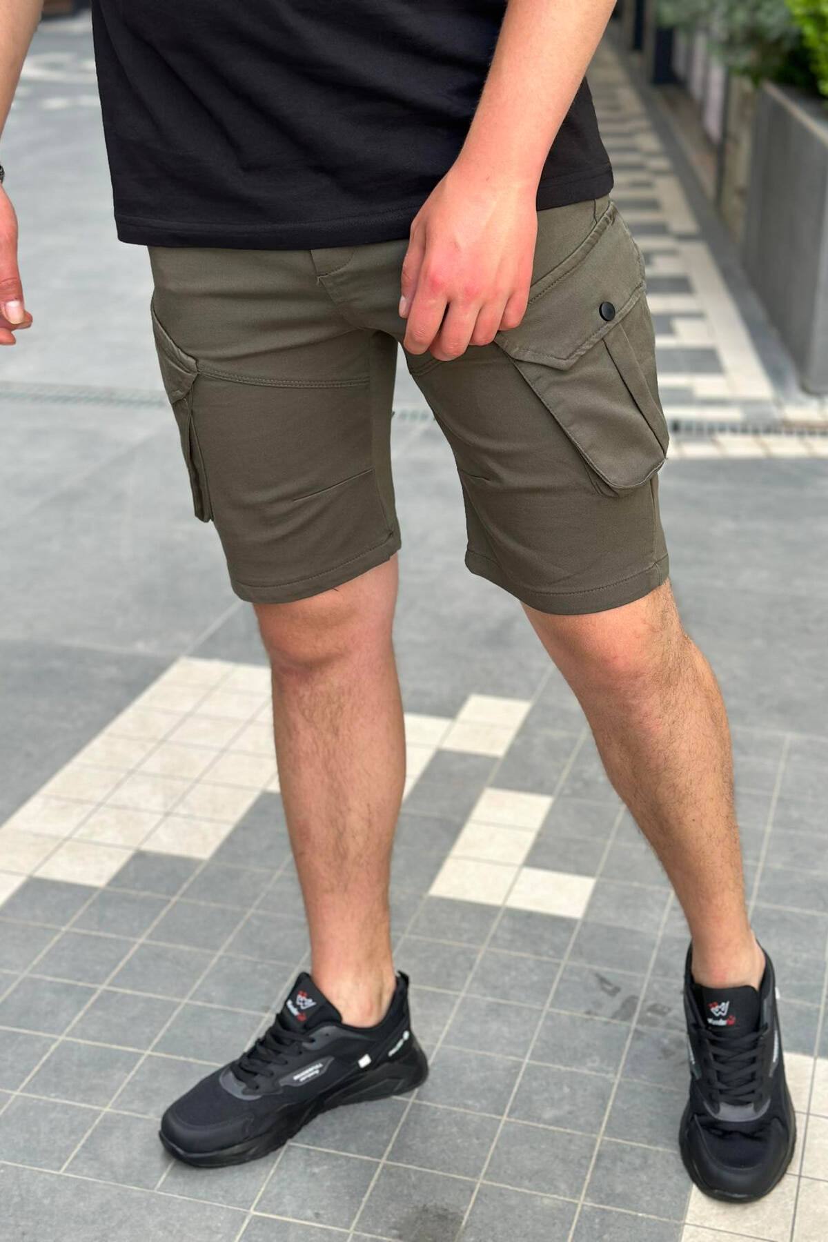 ONE COLOR POCKET MEN CARGO SHORTS DARK GREEN/JEE