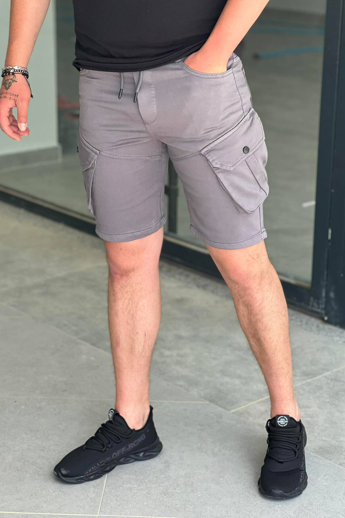 ONE COLOR POCKET MEN CARGO SHORTS DARK GREY/GEE