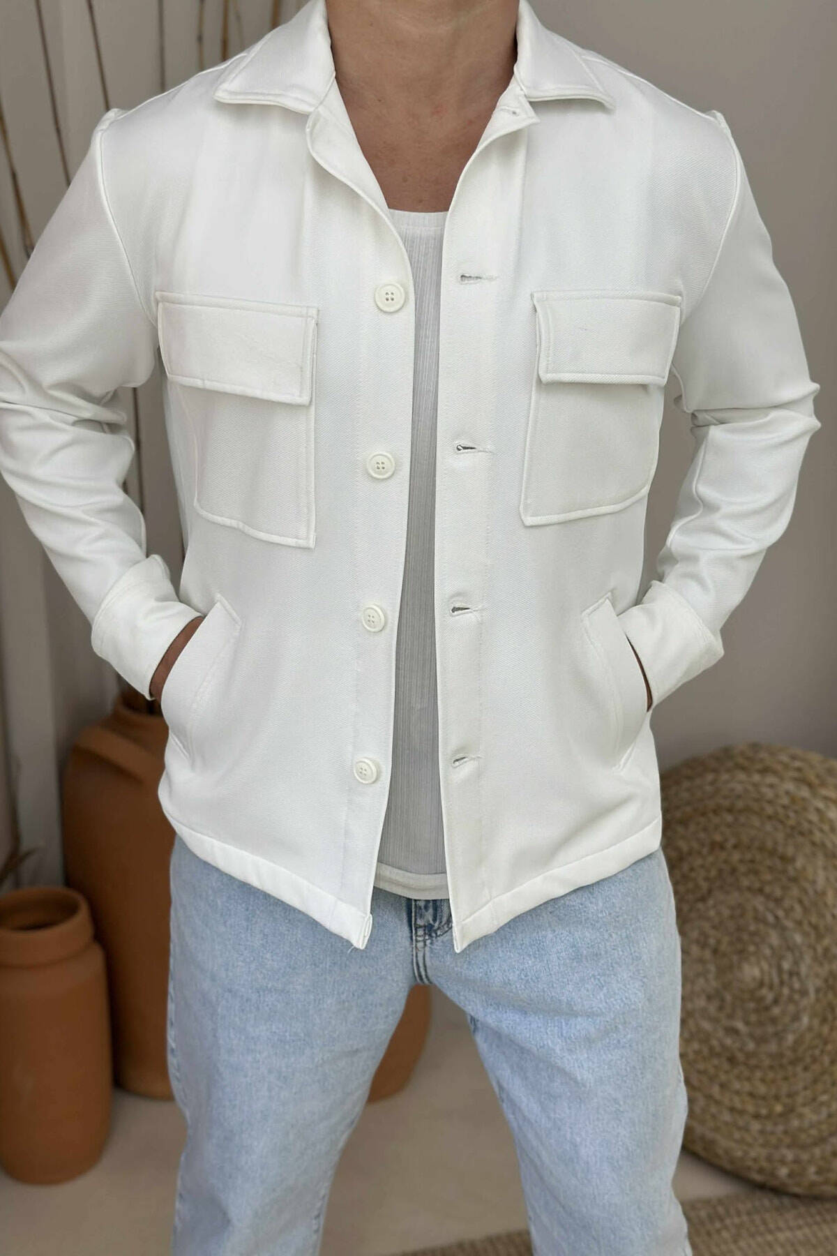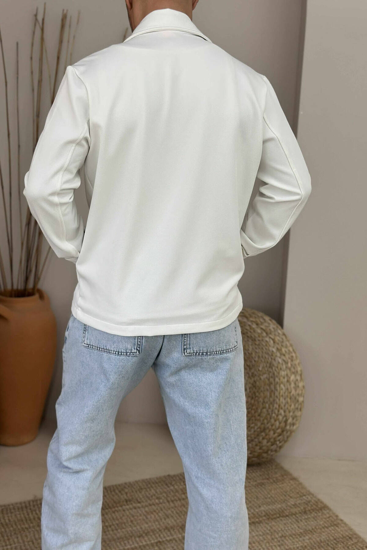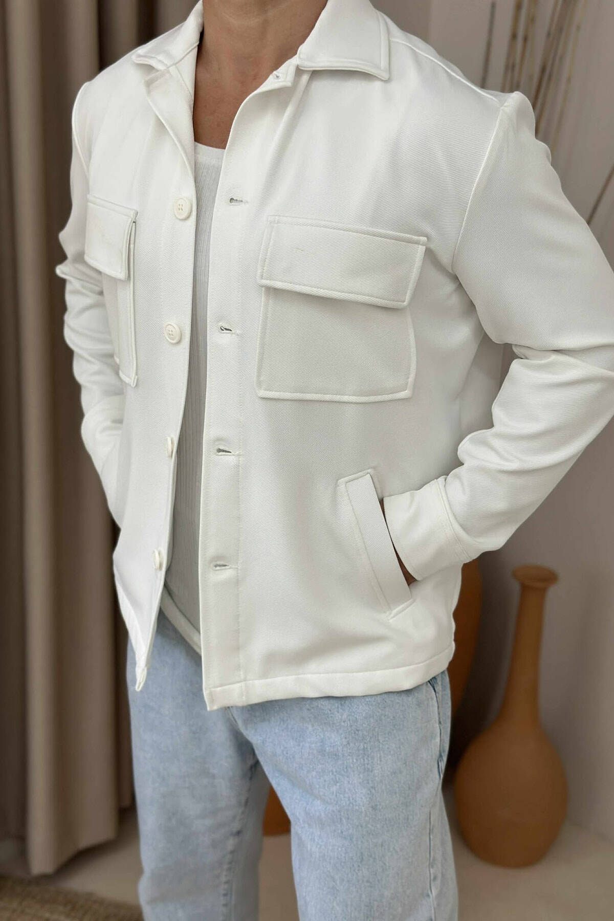 XHAKETË NJË NGJYRËSHE ME DETAJIN E XHEPIT PËR MESHKUJ NË NGJYRËN E BARDHË