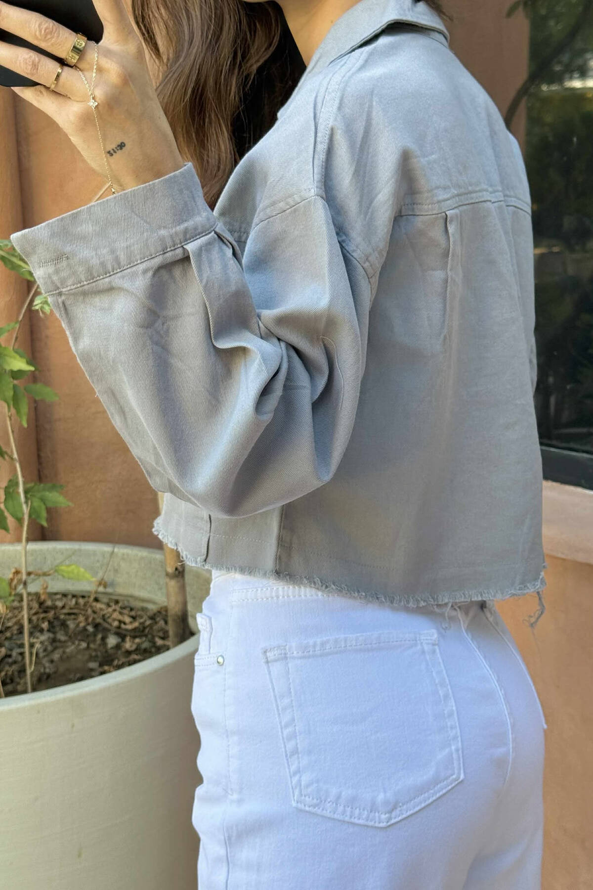 ONE COLOR POCKETS SIMPLE WOMEN SHIRT GREY/GRI