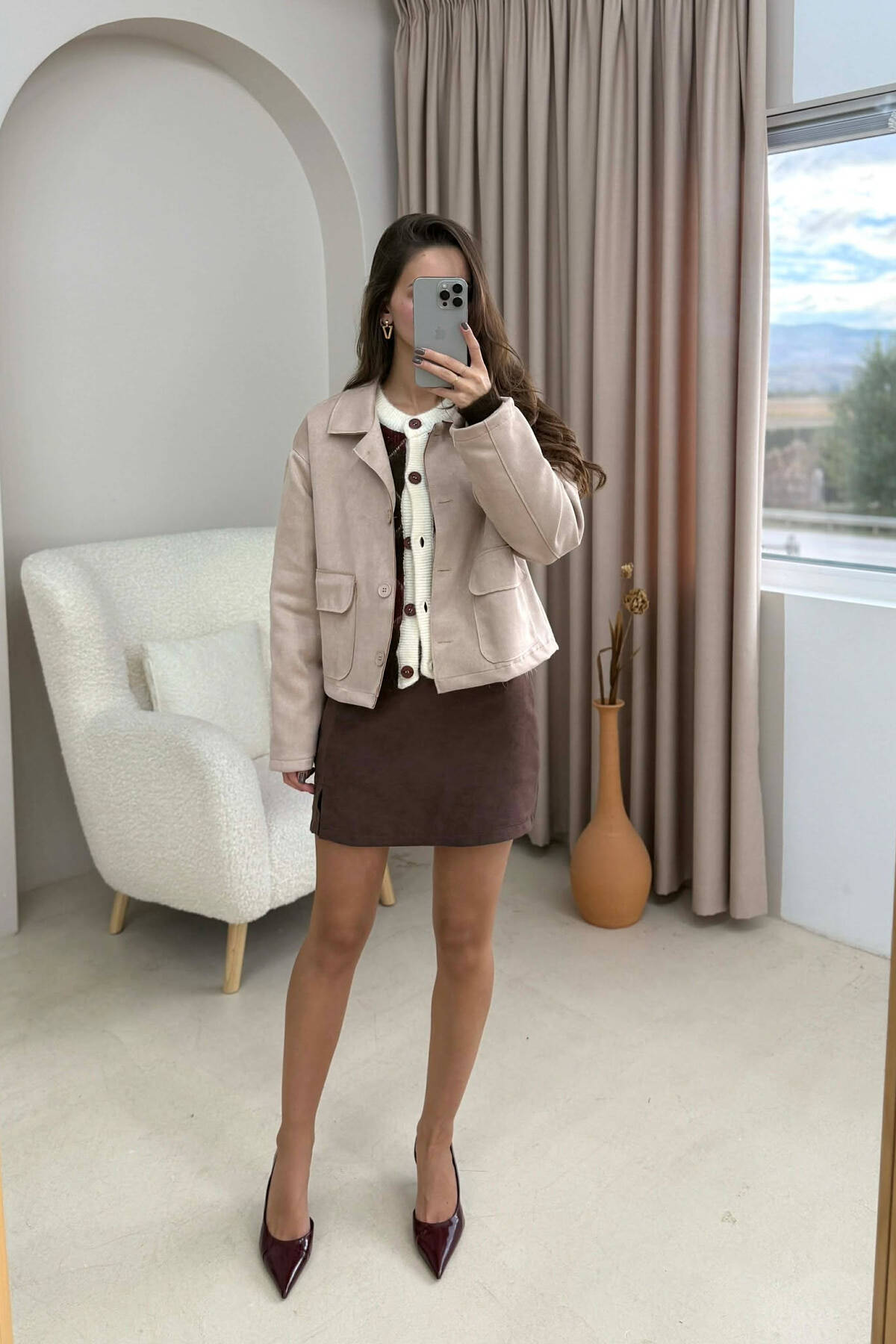 ONE COLOR POCKETS WOMEN JACKET BEIGE/BEZHE