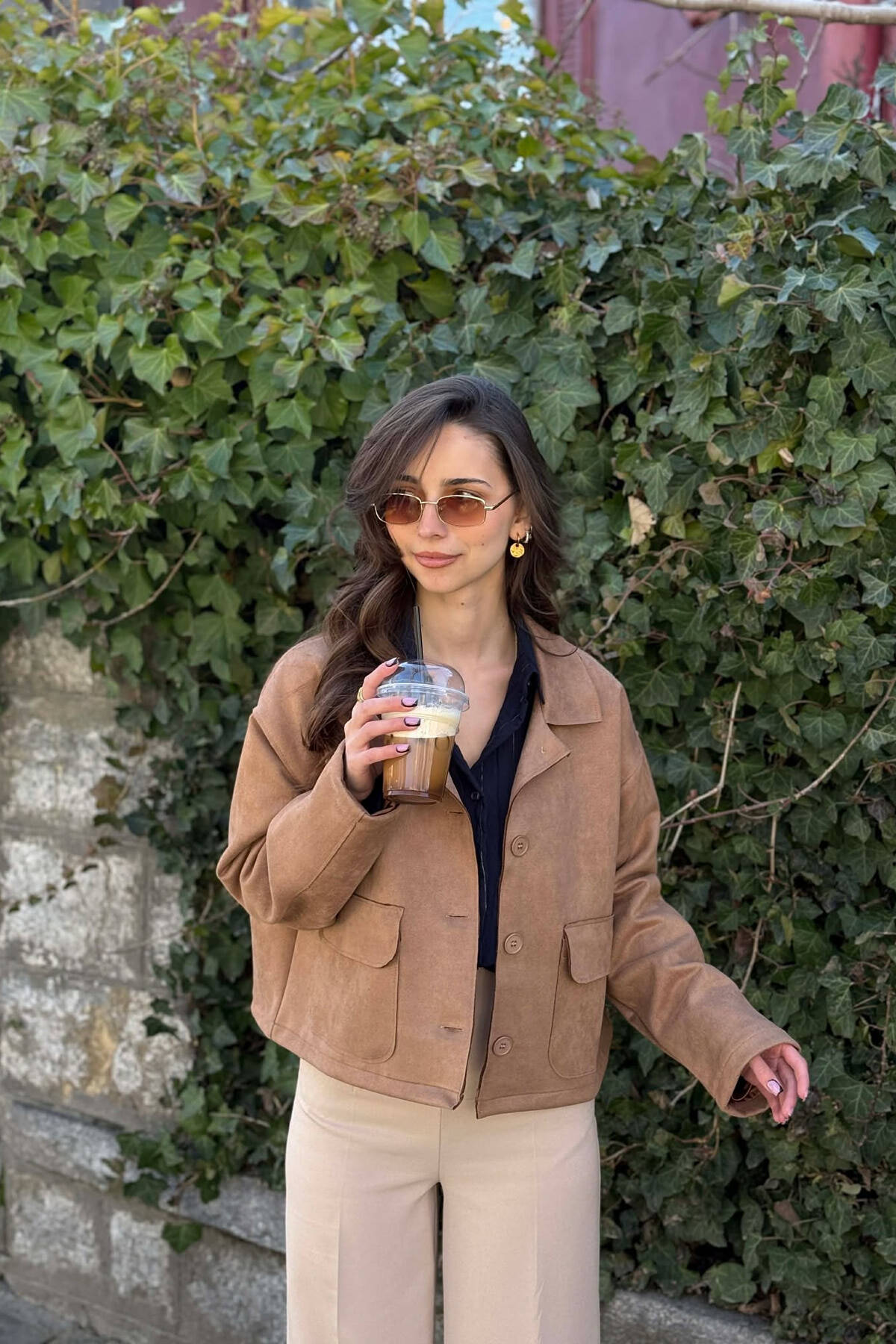 ONE COLOR POCKETS WOMEN JACKET LIGHT BROWN/KAZB