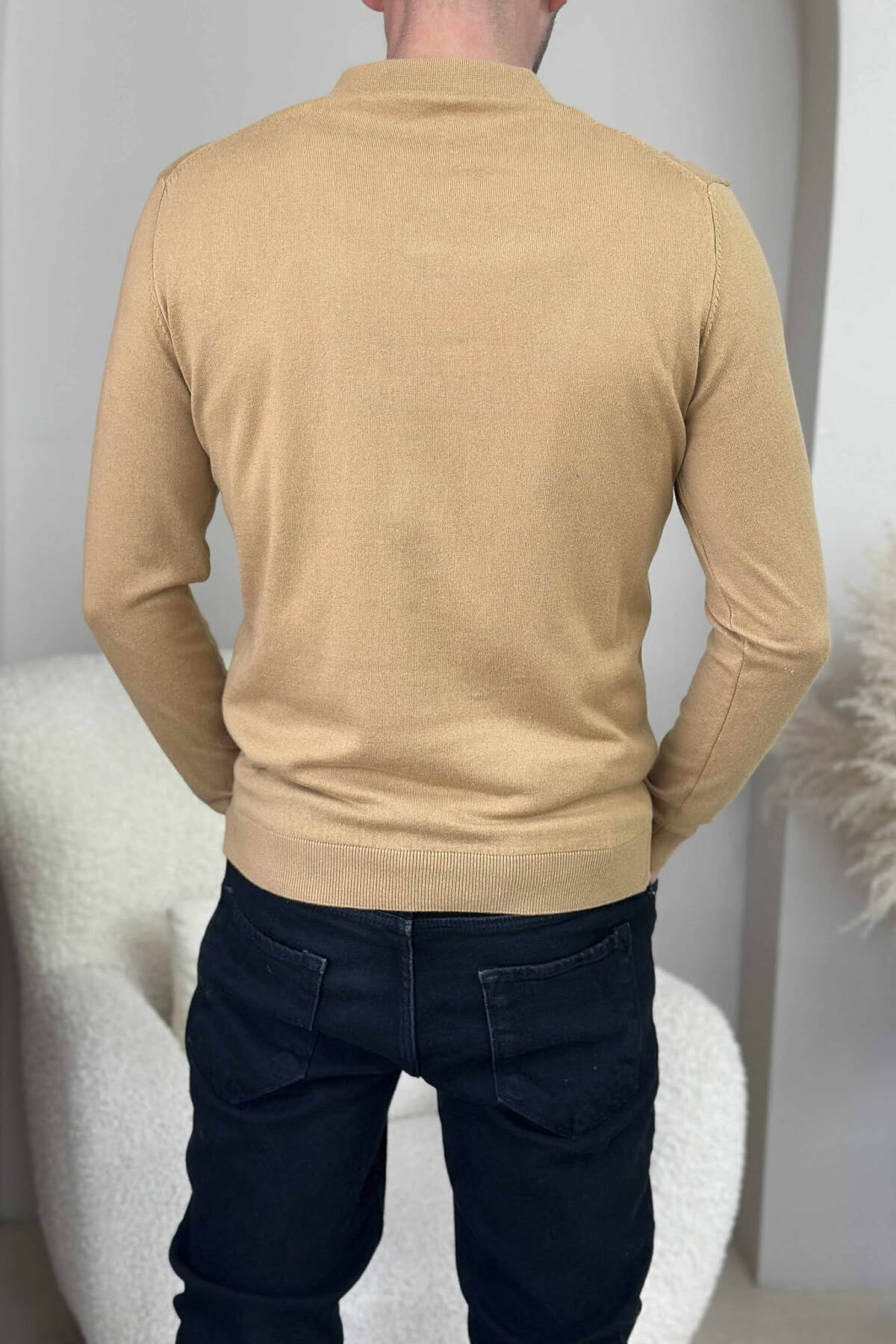 ZIPPER NECK ONE COLOR MEN SWEATER BROWN/KAFE
