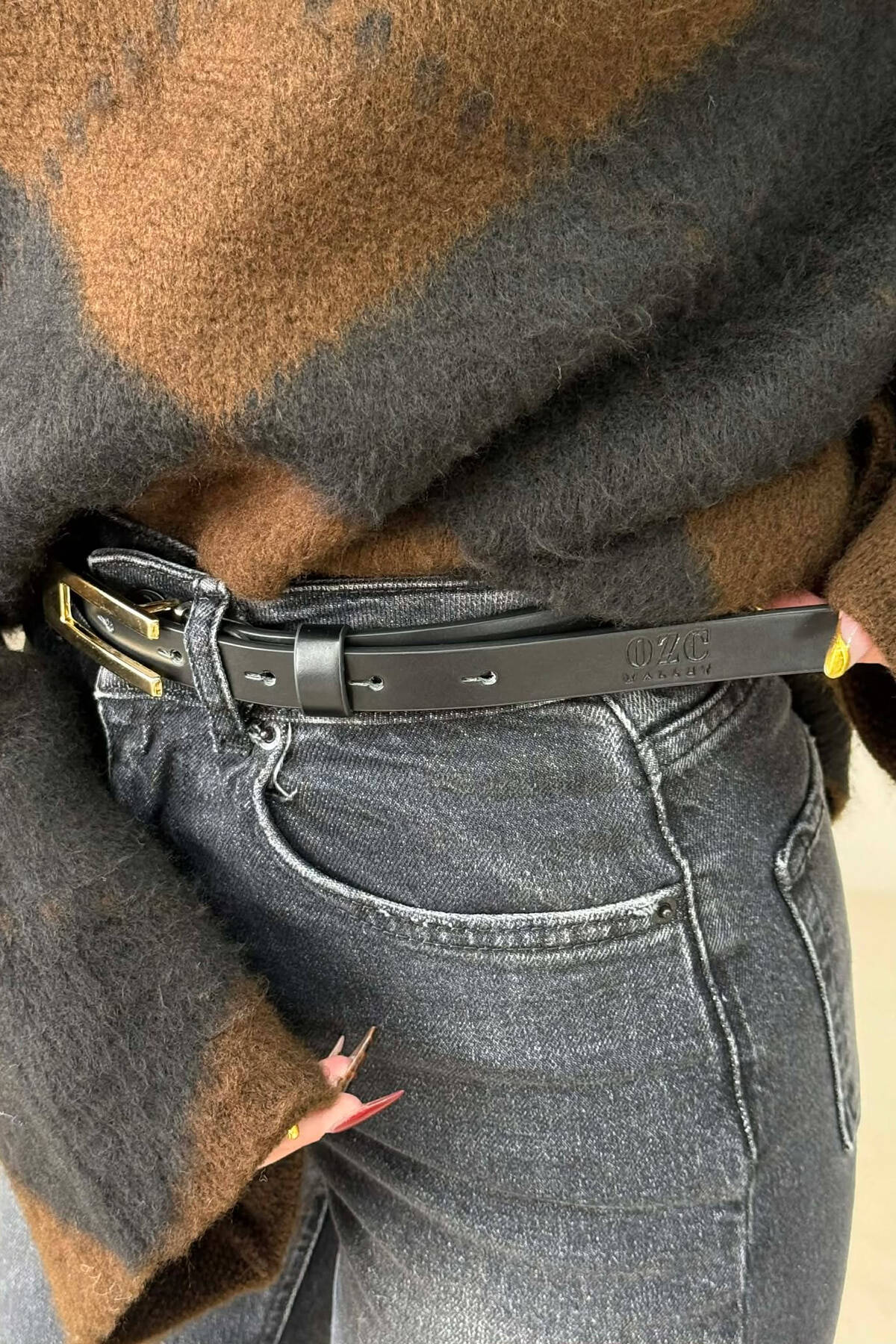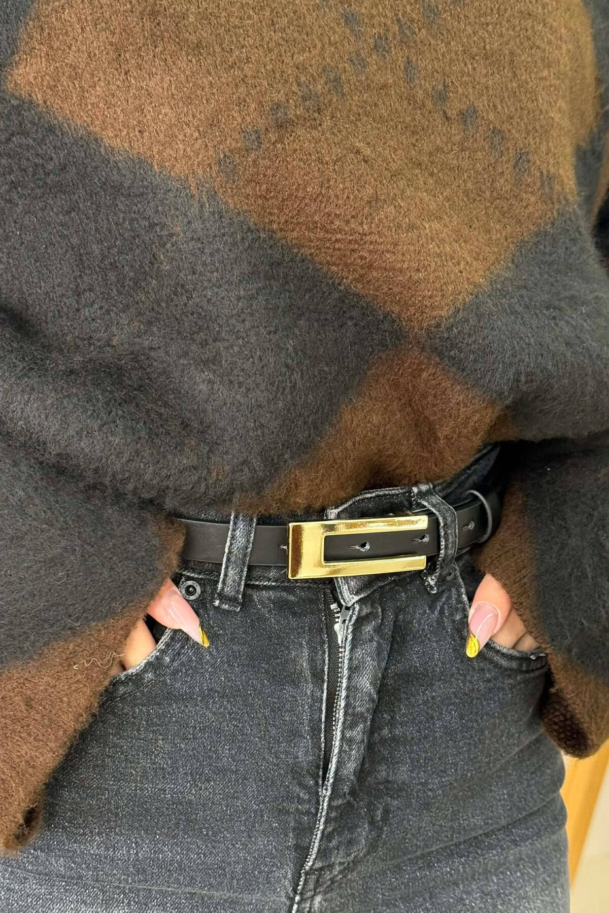 SIMPLE BUCKLE LEATHER WOMEN BELT BLACK+GOLD/ZEGO