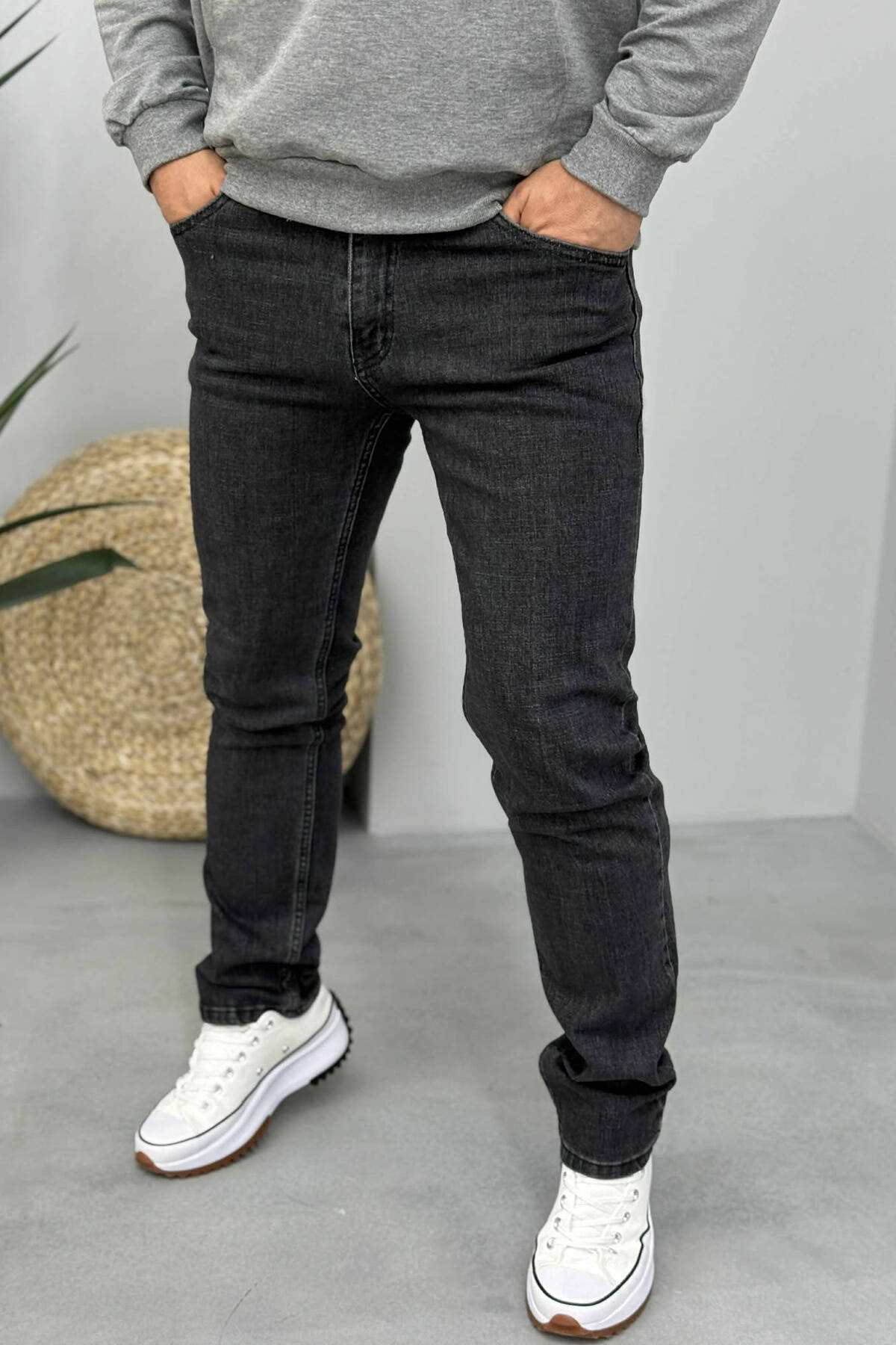 SIMPLE ONE COLOR MEN JEANS DARK GREY/GEE