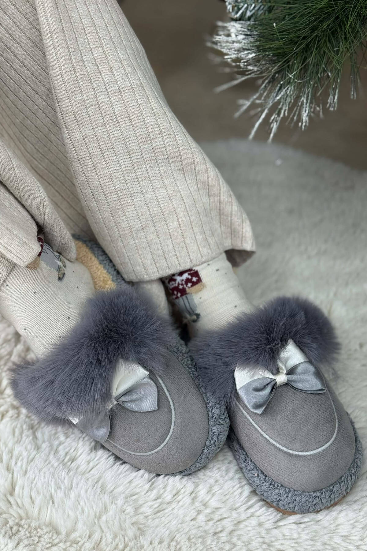 ONE COLOR CHRISTMAS TREE WOMAN SLIPPERS CREAM/KREM