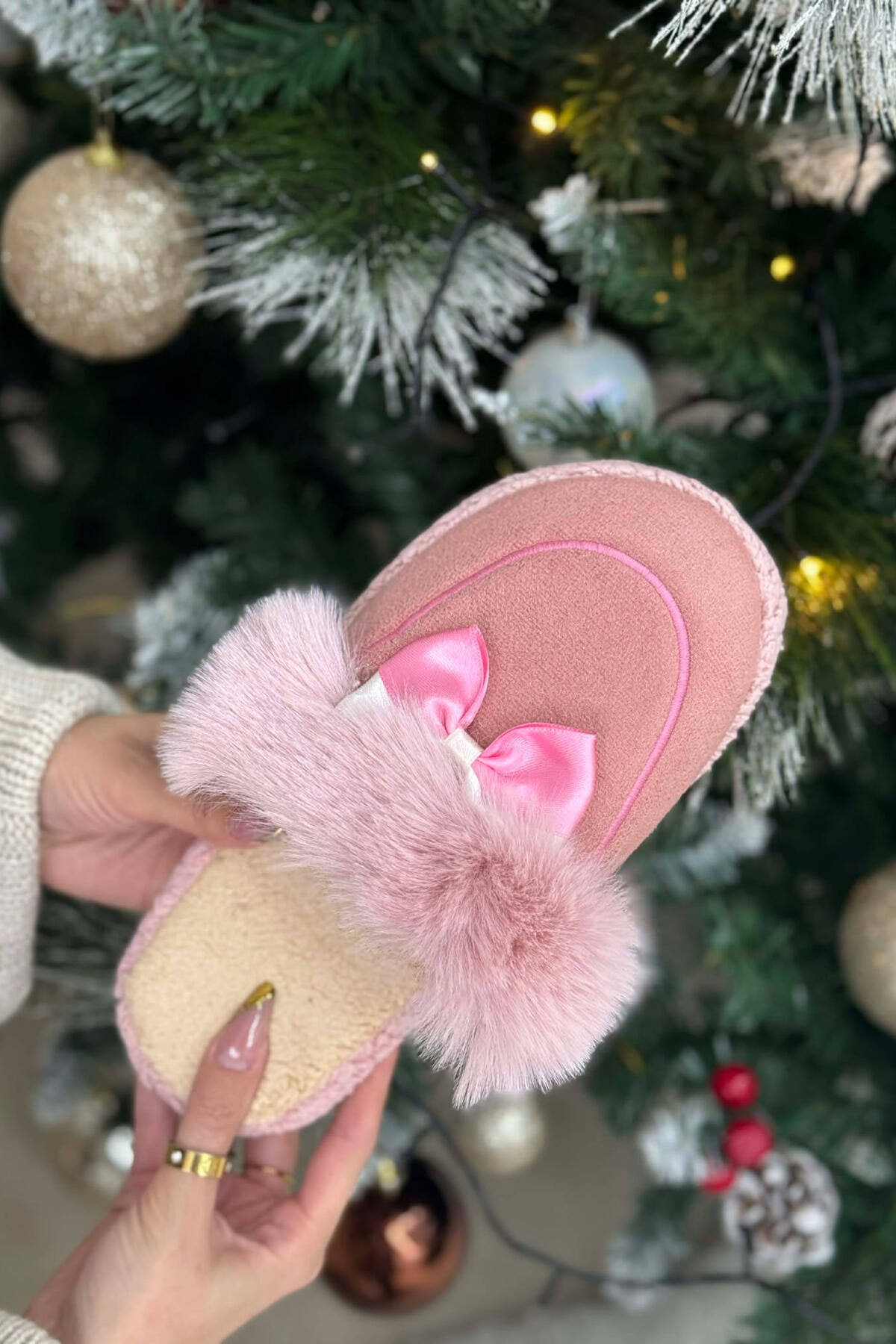ONE COLOR CHRISTMAS TREE WOMAN SLIPPERS CREAM/KREM
