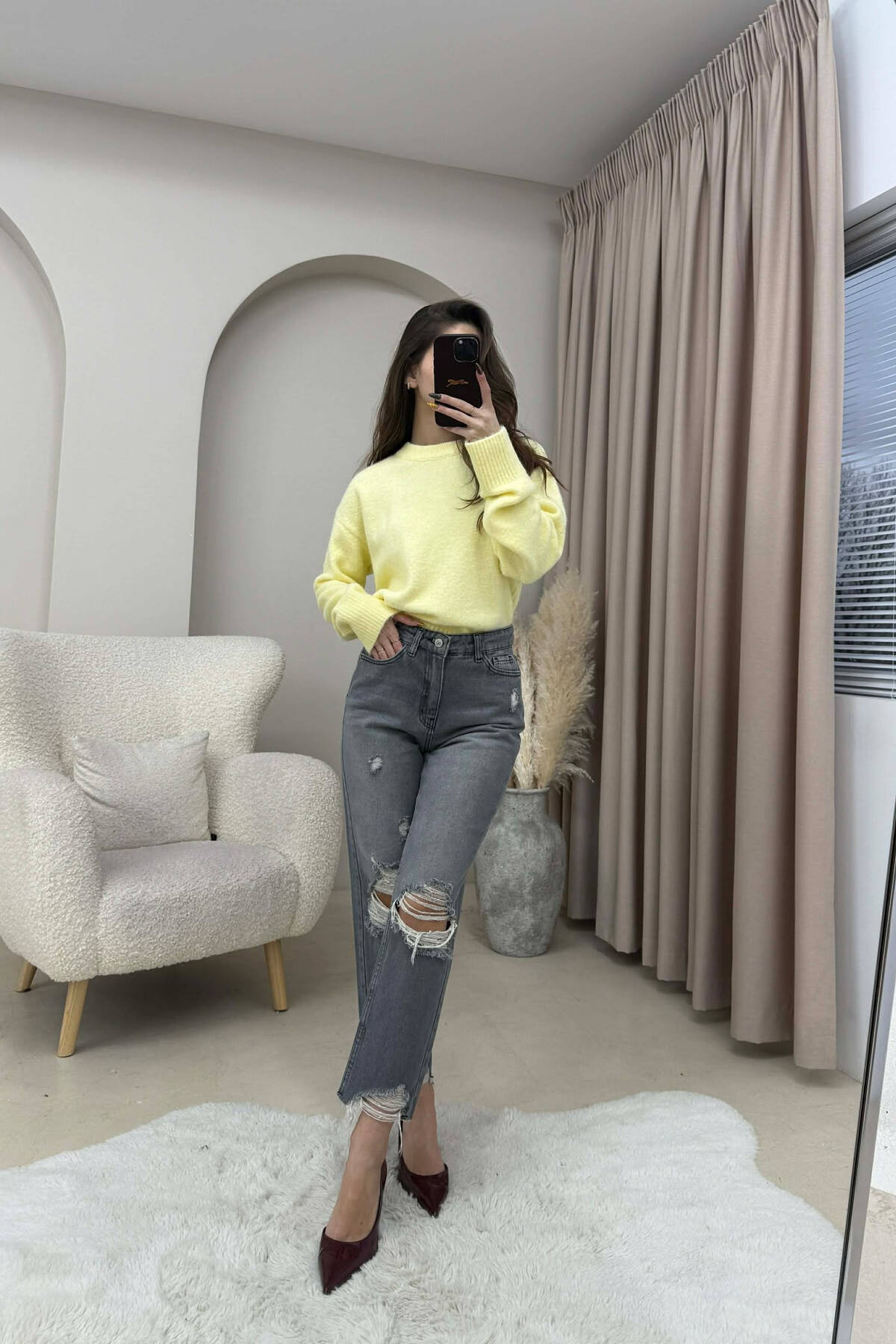 ONE COLOR RIPPED CUT OFF EDGES WOMEN JEANS GREY/GRI