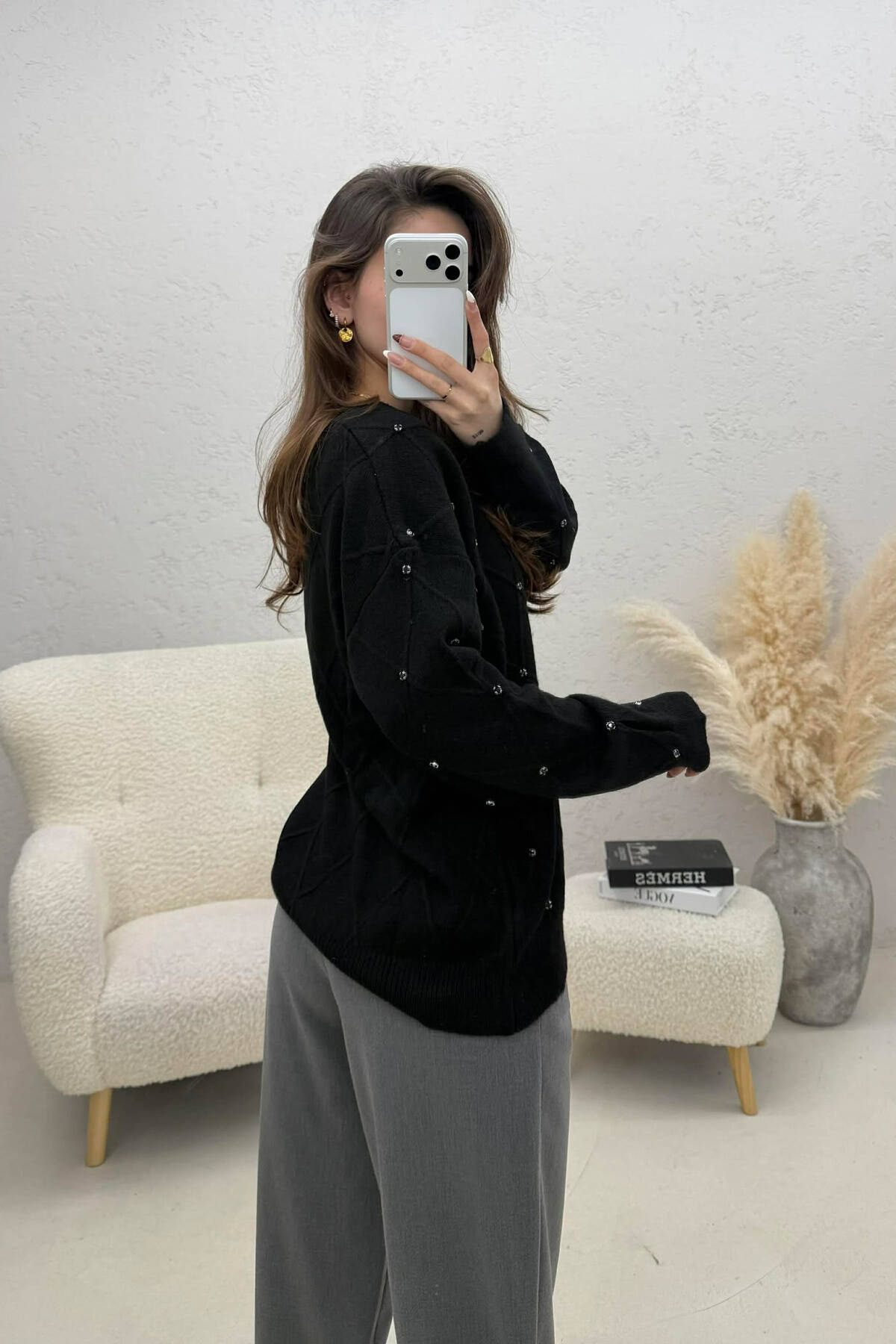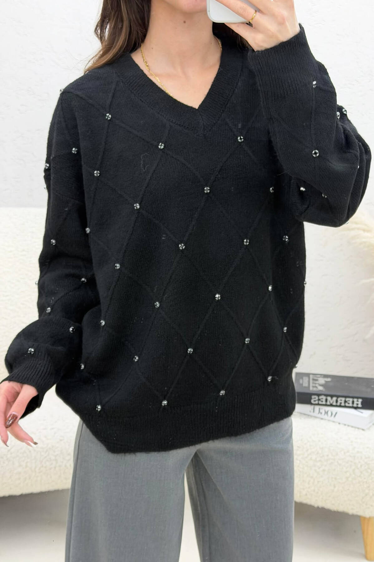 BLUZE NJE NGJYRESHE ME DIZAJNE ROMBI DHE DETAJE GURESH PER FEMRA NE NGJYRE TE ZEZE