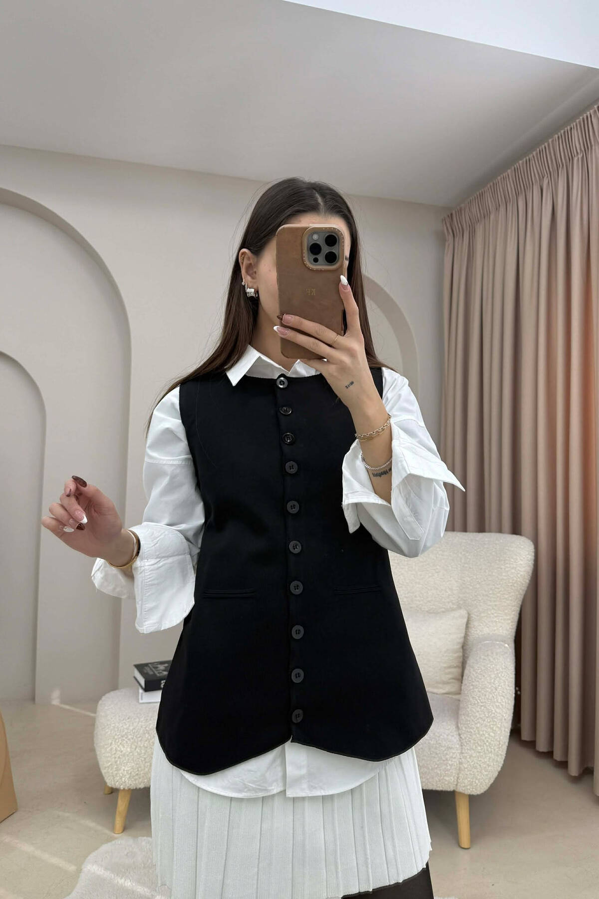 BUTTONS DETAIL LEATHER WOMEN VEST BLACK/ E ZEZE