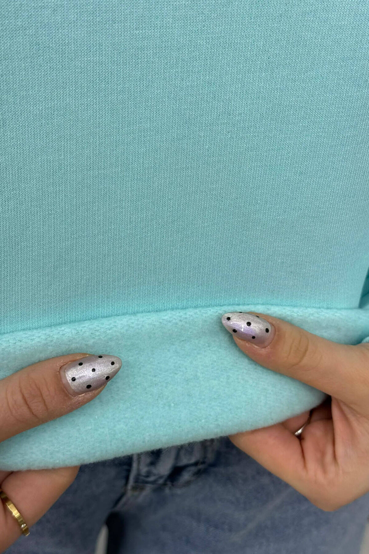 ONE COLOR ROUND NECK FLUFFY WOMEN SWEATSHIRT BLUE-MINT/BLME