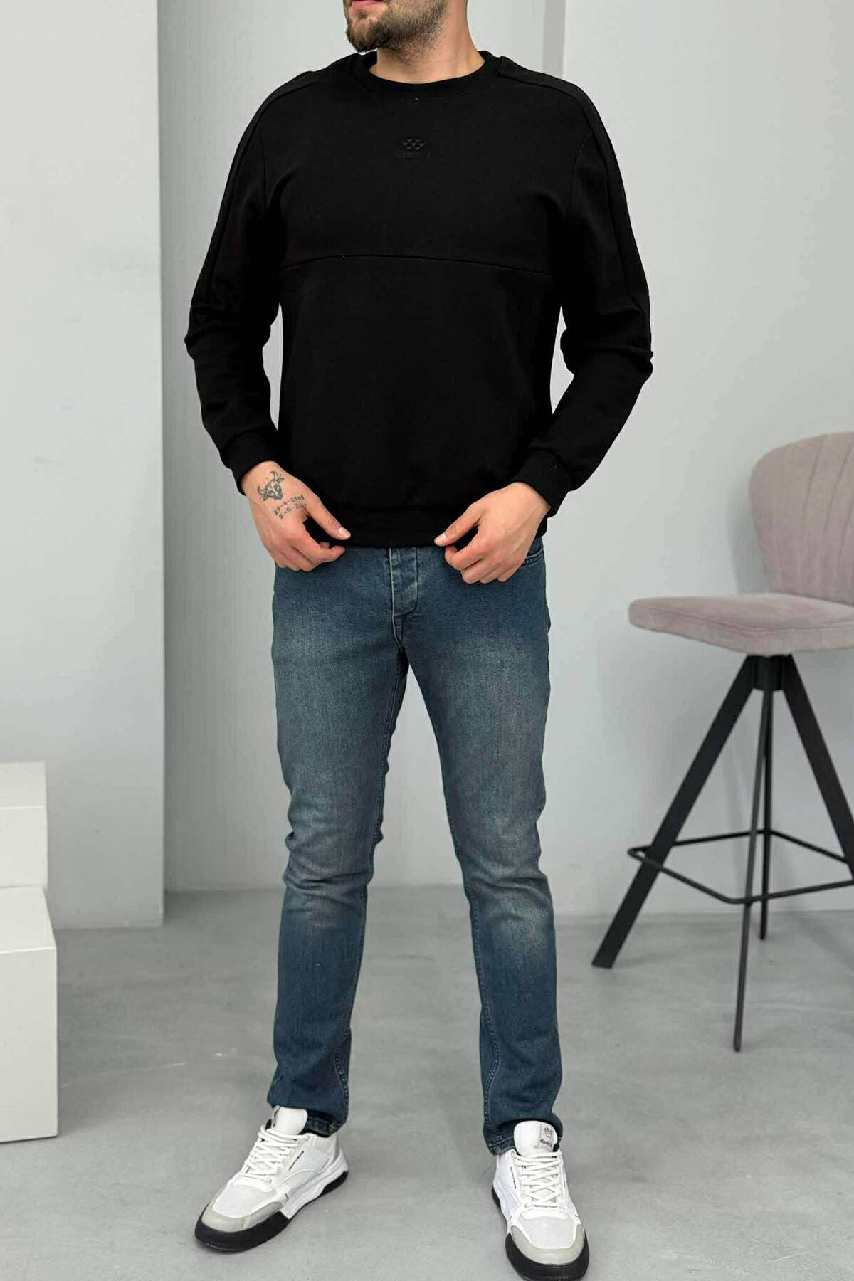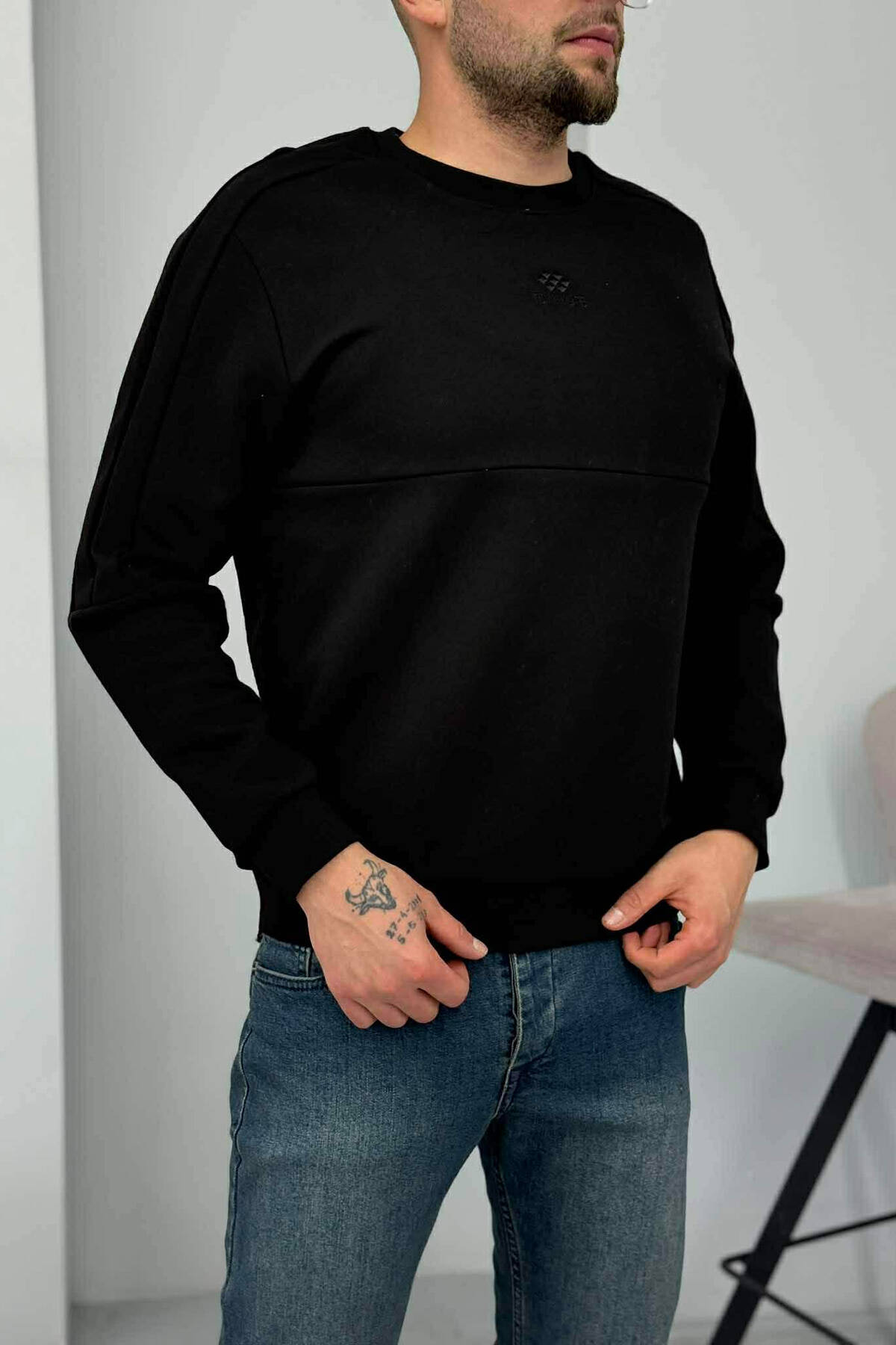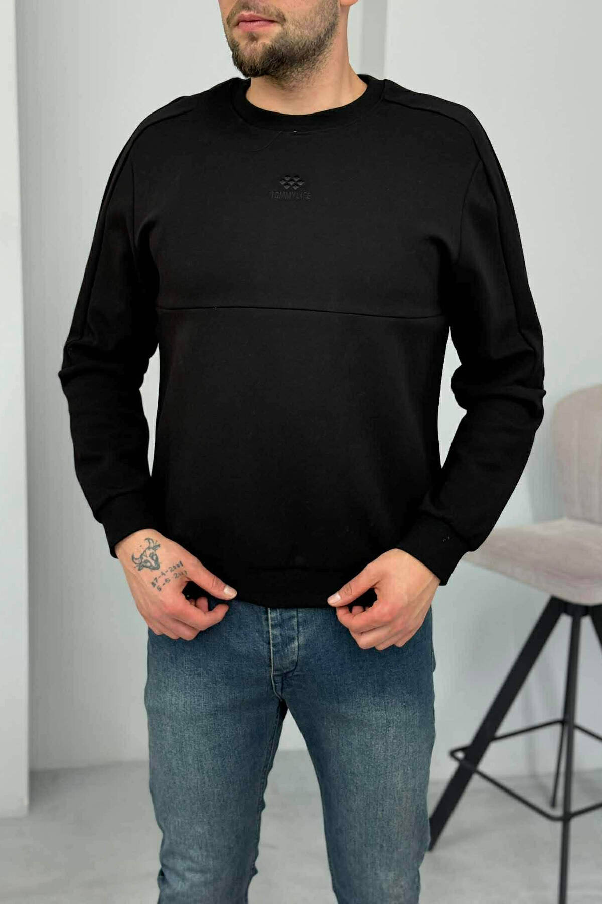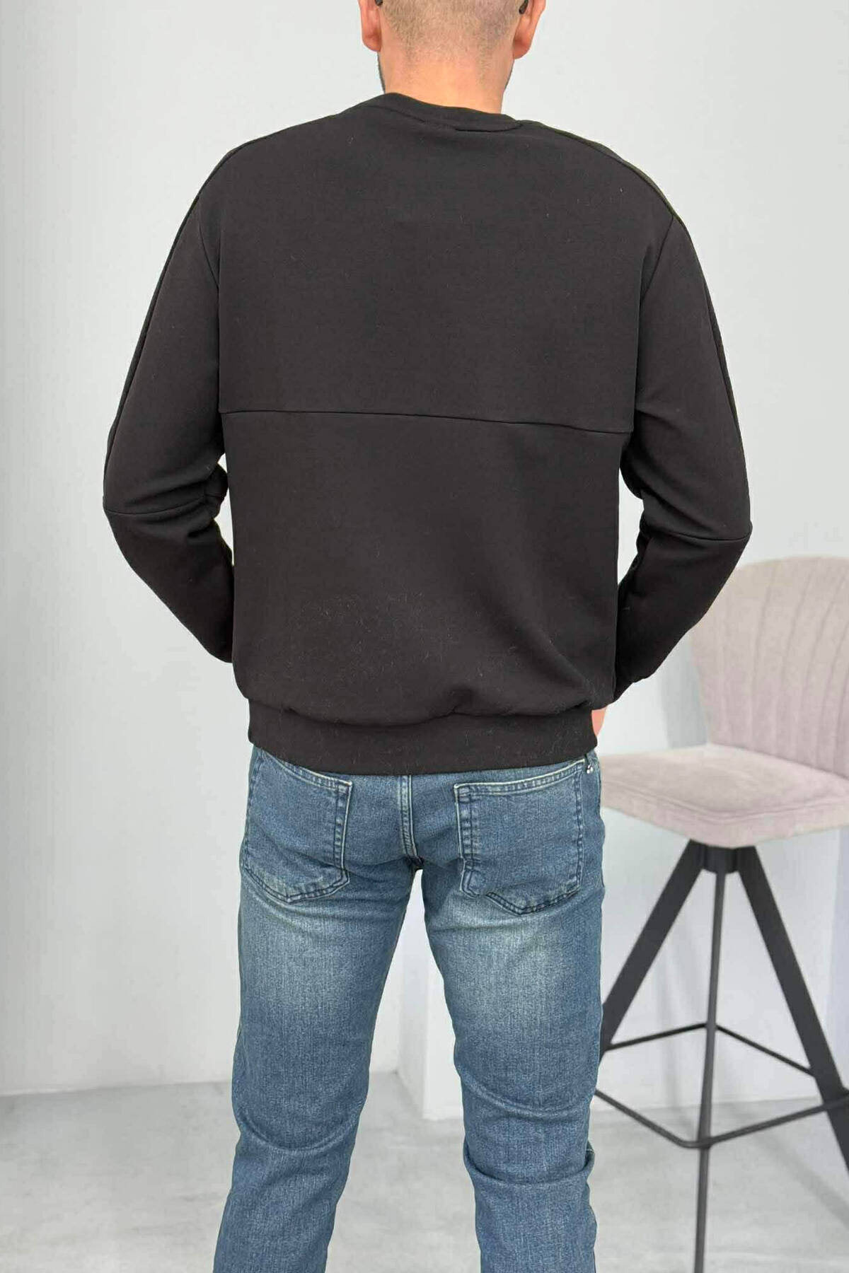 ONE COLOR ROUND NECK FRONT LOGO MEN SWEATSHIRT BLACK/ E ZEZE