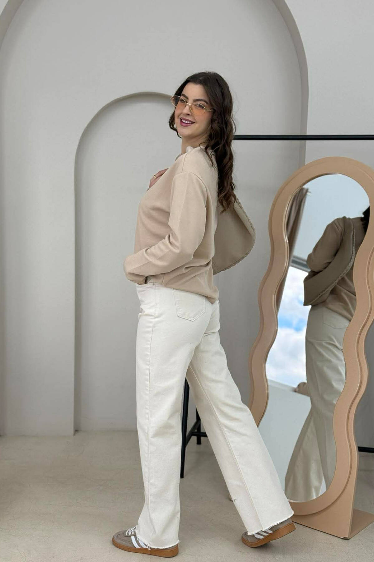 ONE COLOR SIMPLE WOMAN SWEATSHIRT CREAM/KREM