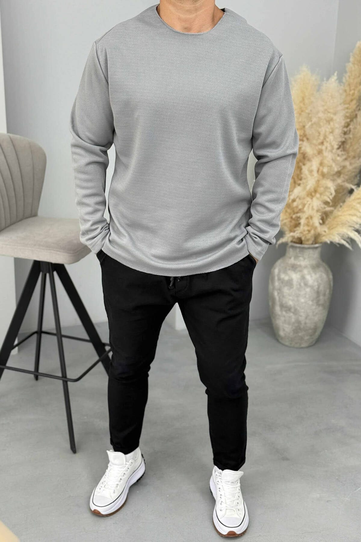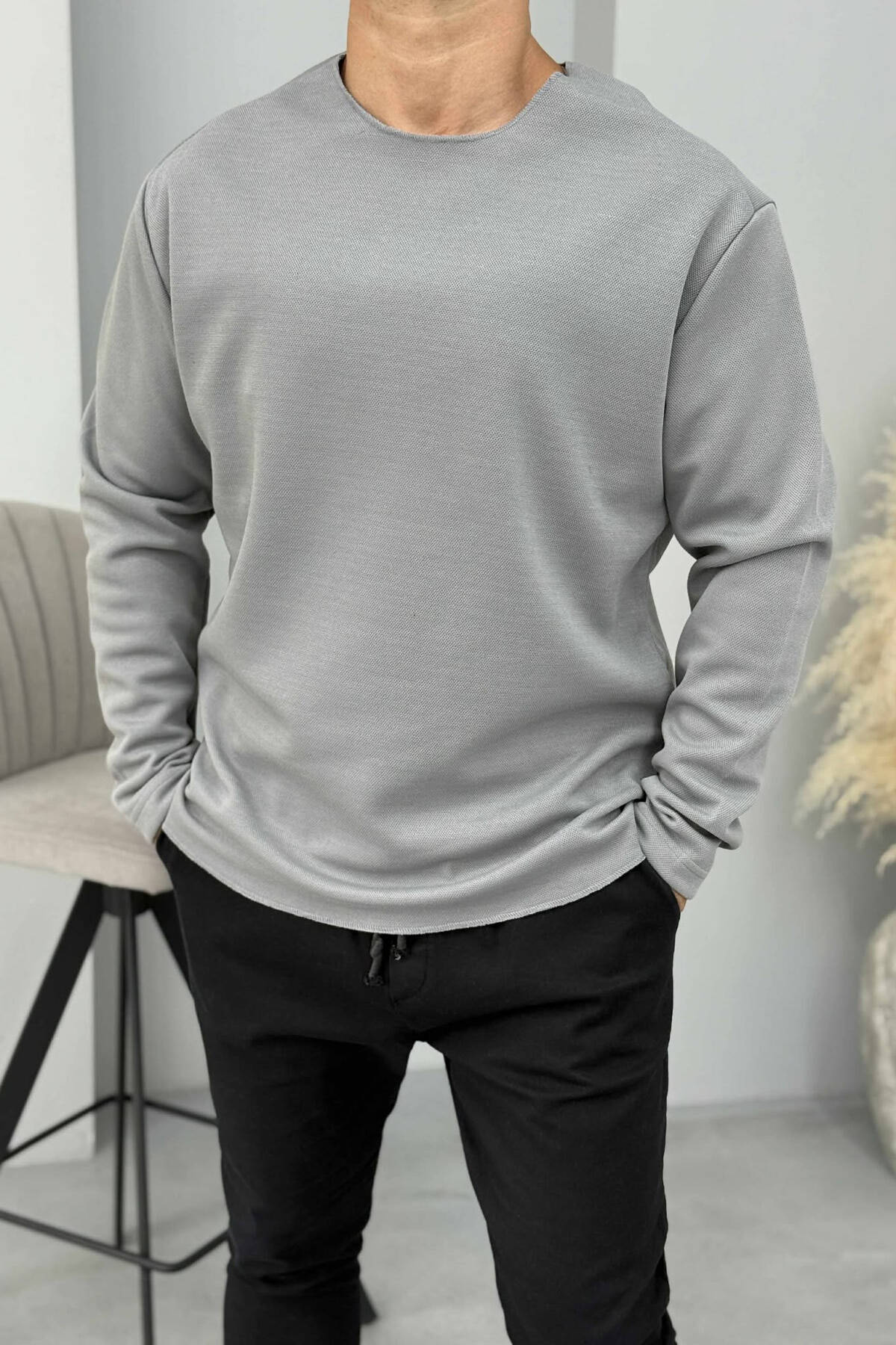 ONE COLOR ROUND NECK MEN SWEATSHIRT GREY/GRI