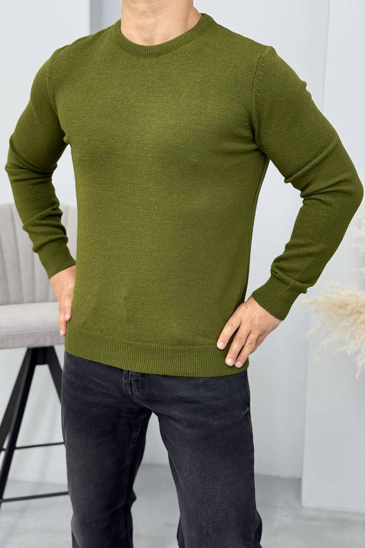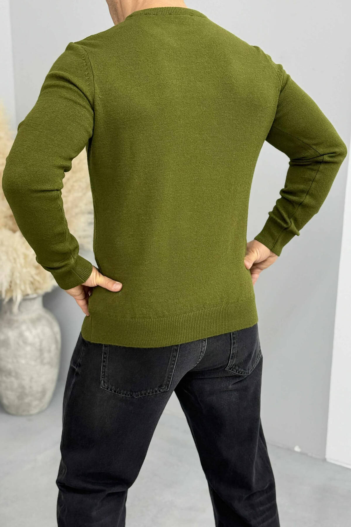 ROUND NECK STRIPED MEN SWEATER GREEN/JESHILE