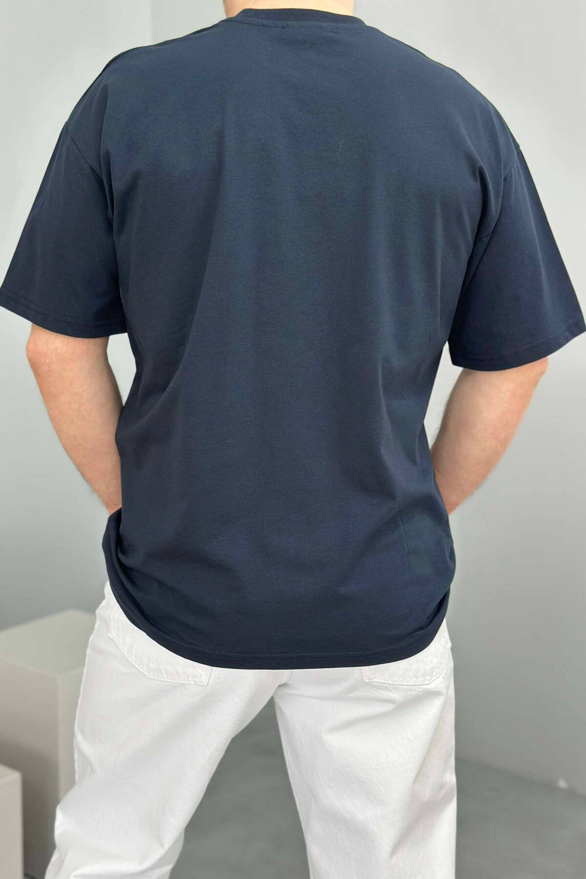 T-SHIRT NJË NGJYRËSH PËR MESHKUJ NË NGJYRËN BLU TË ERRËT