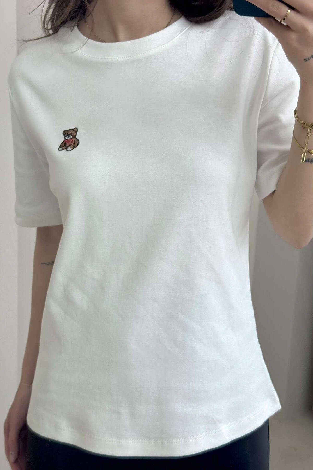 ONE COLOR ROUND NECK TEDDY BEAR LOGO WOMEN T-SHIRT WHITE-E BARDHE