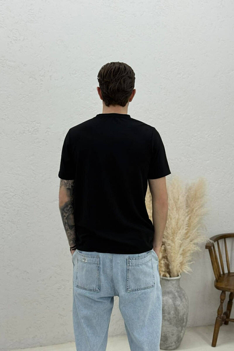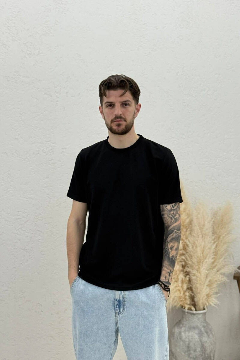 ONE COLOR ROUND NECK TEXTURED MEN T-SHIRT BLACK/ E ZEZE