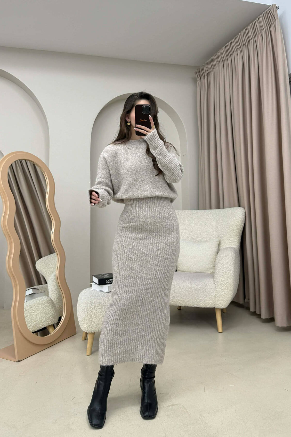 ONE COLOR KNITTED WOMAN DRESS CREAM/KREM