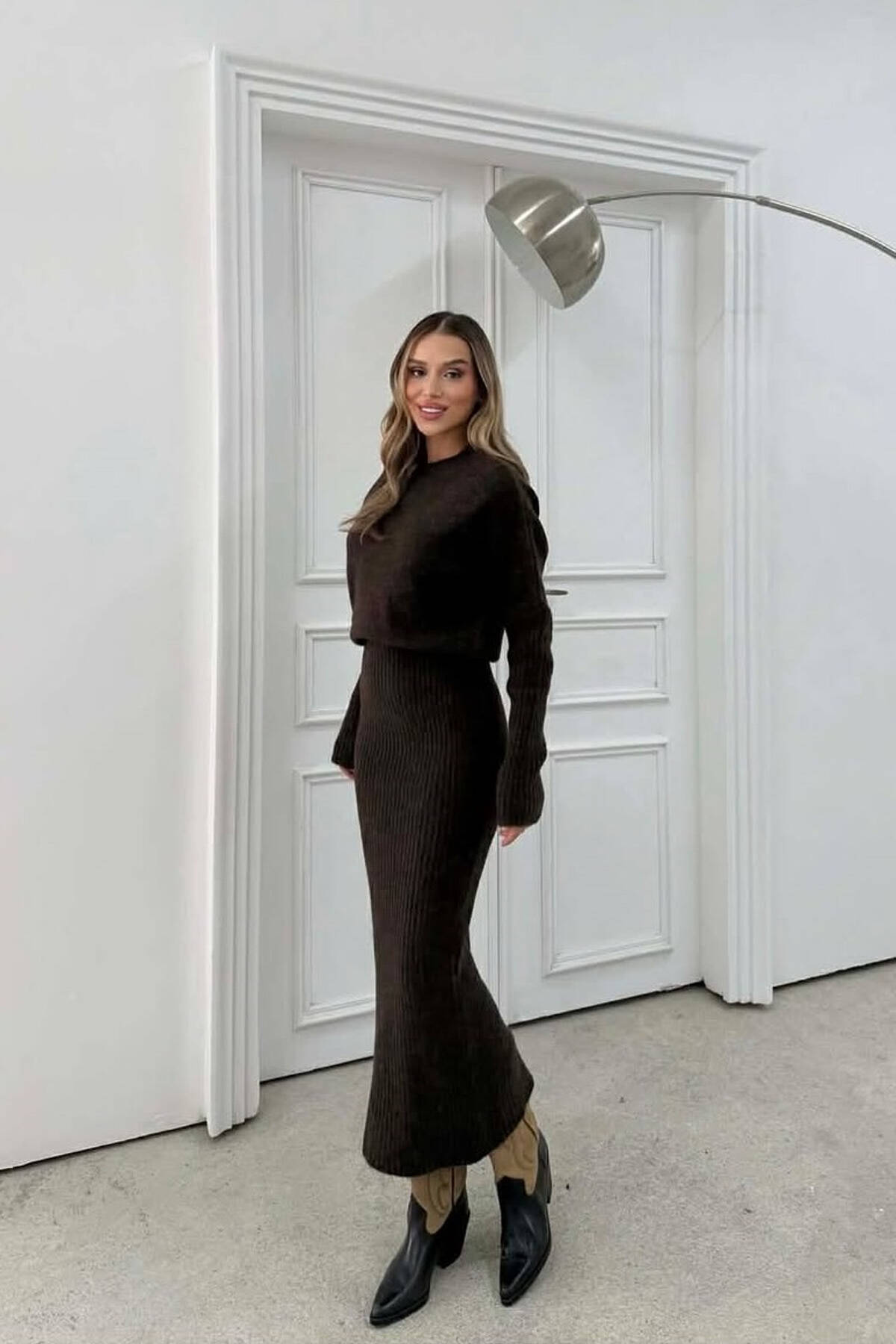 ONE COLOR KNITTED WOMAN DRESS BROWN/KAFE