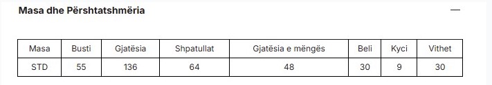 Size chart