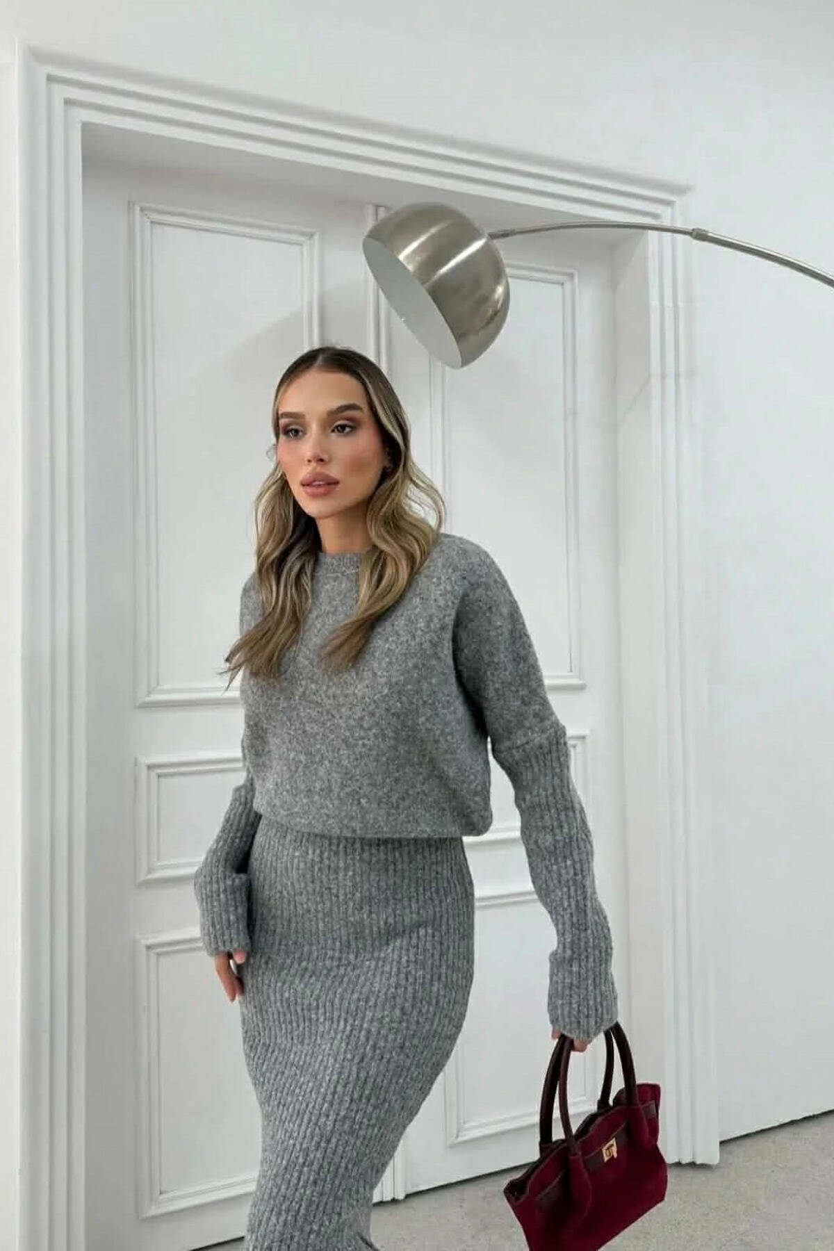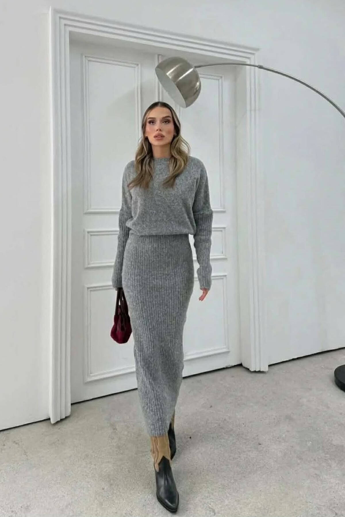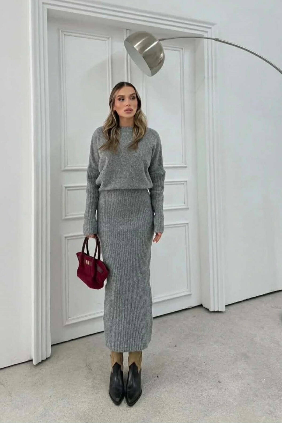 ONE COLOR ROUND NECK WOMAN DRESS GREY/GRI