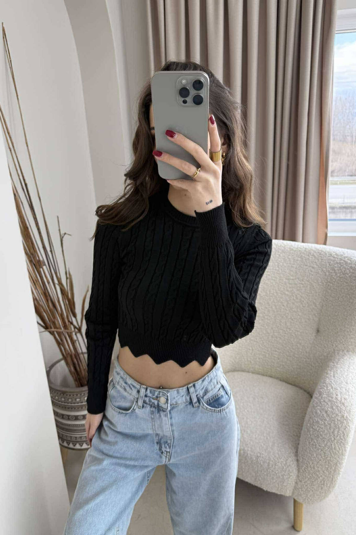 ONE COLOR ROUND NECK WOMEN SWEATER BLACK/ E ZEZE