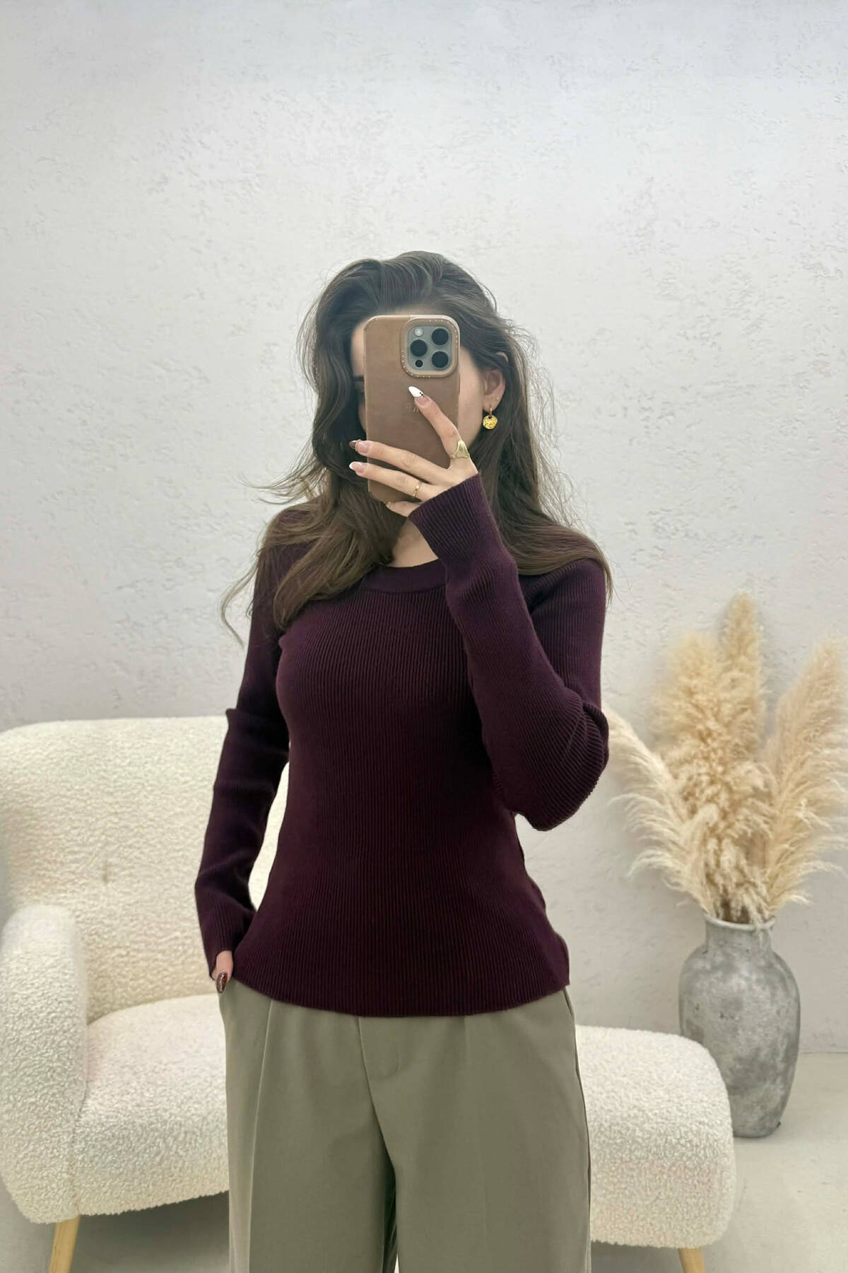 ONE COLOR SIMPLE WOMAN SWEATSHIRT BROWN/KAFE