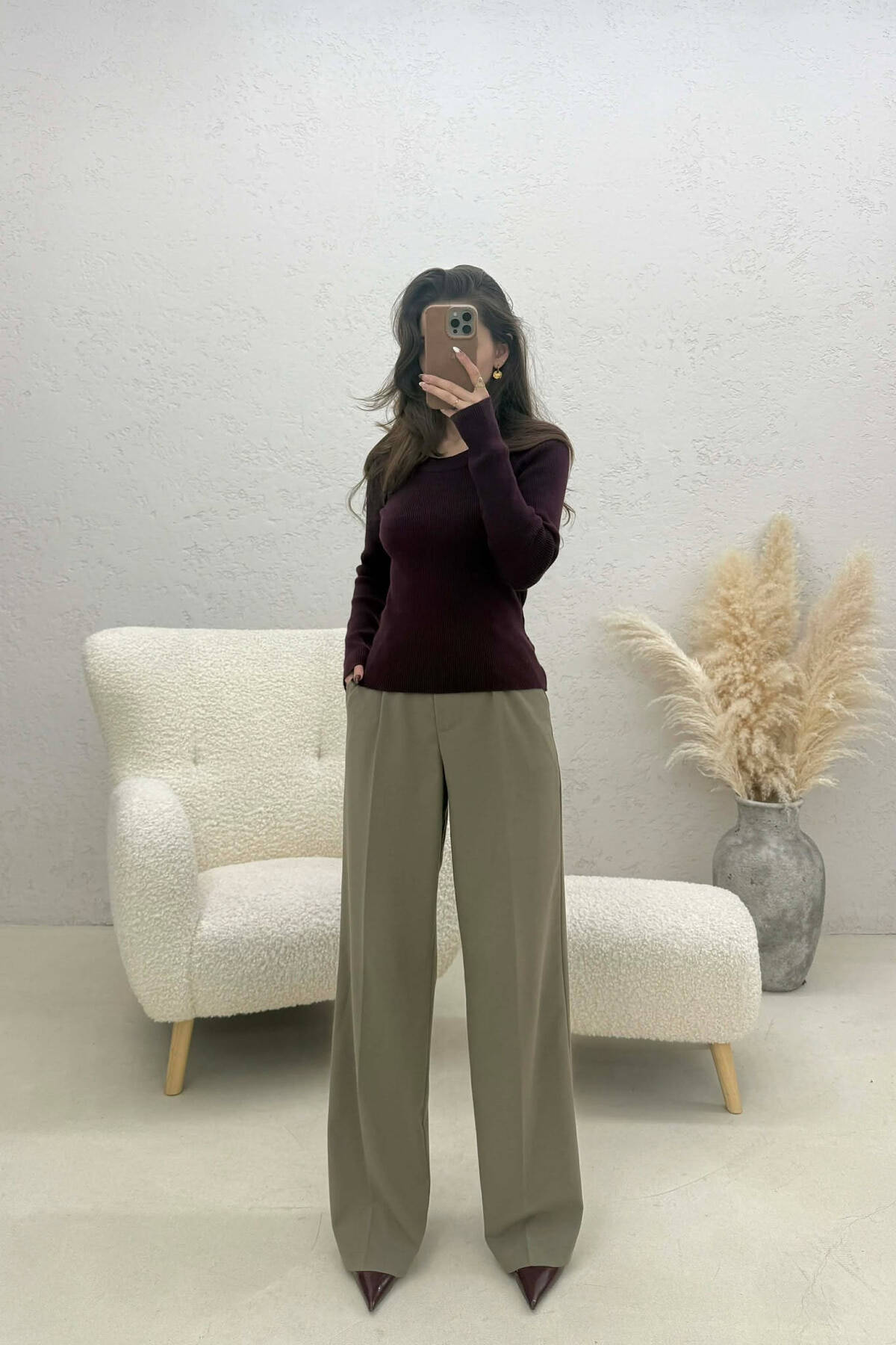ONE COLOR SEMI NECK WOMAN SWEATSHIRT BURGUNDY/VISHNJE