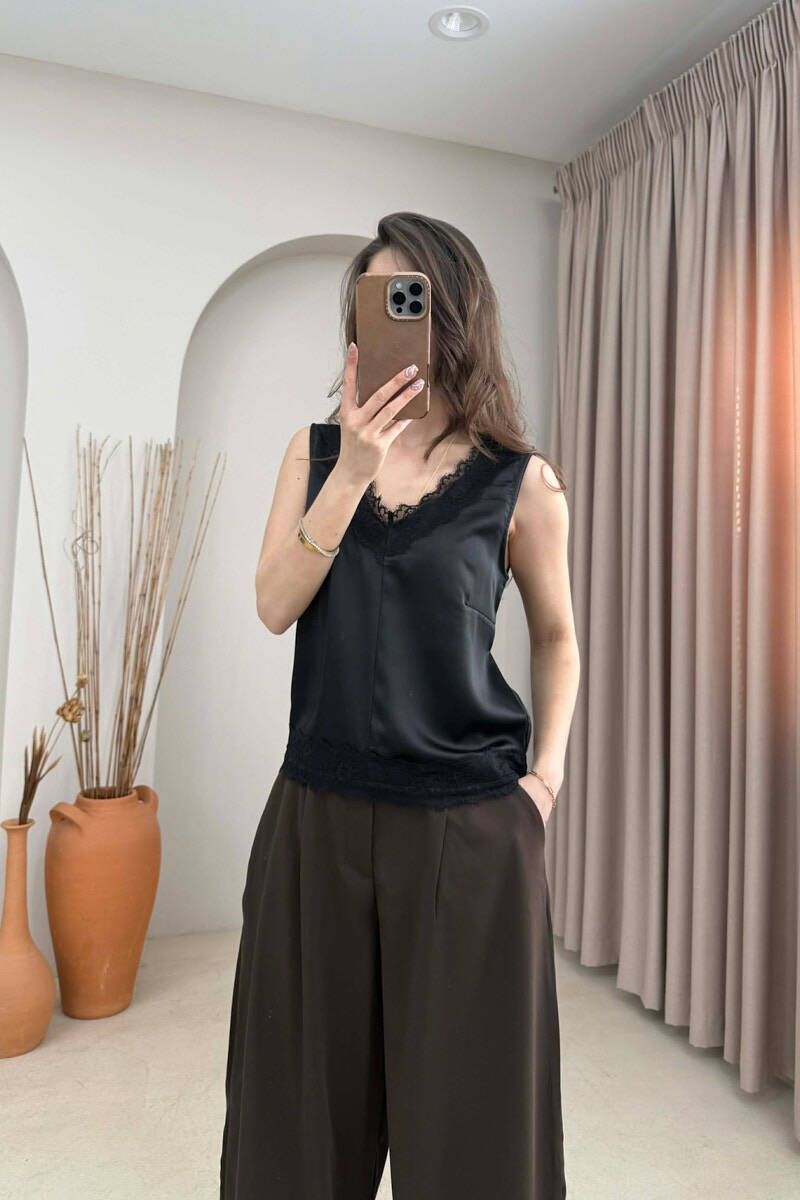 ONE COLOR SATIN WOMAN TANK TOP BLACK/ E ZEZE