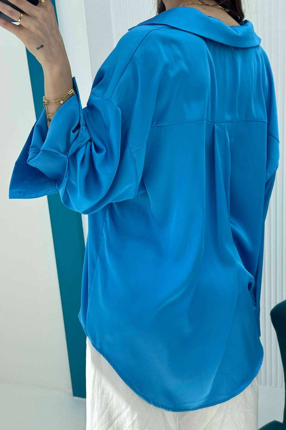 ONE COLOR SATIN WOMEN SHIRT BLUE/BLU