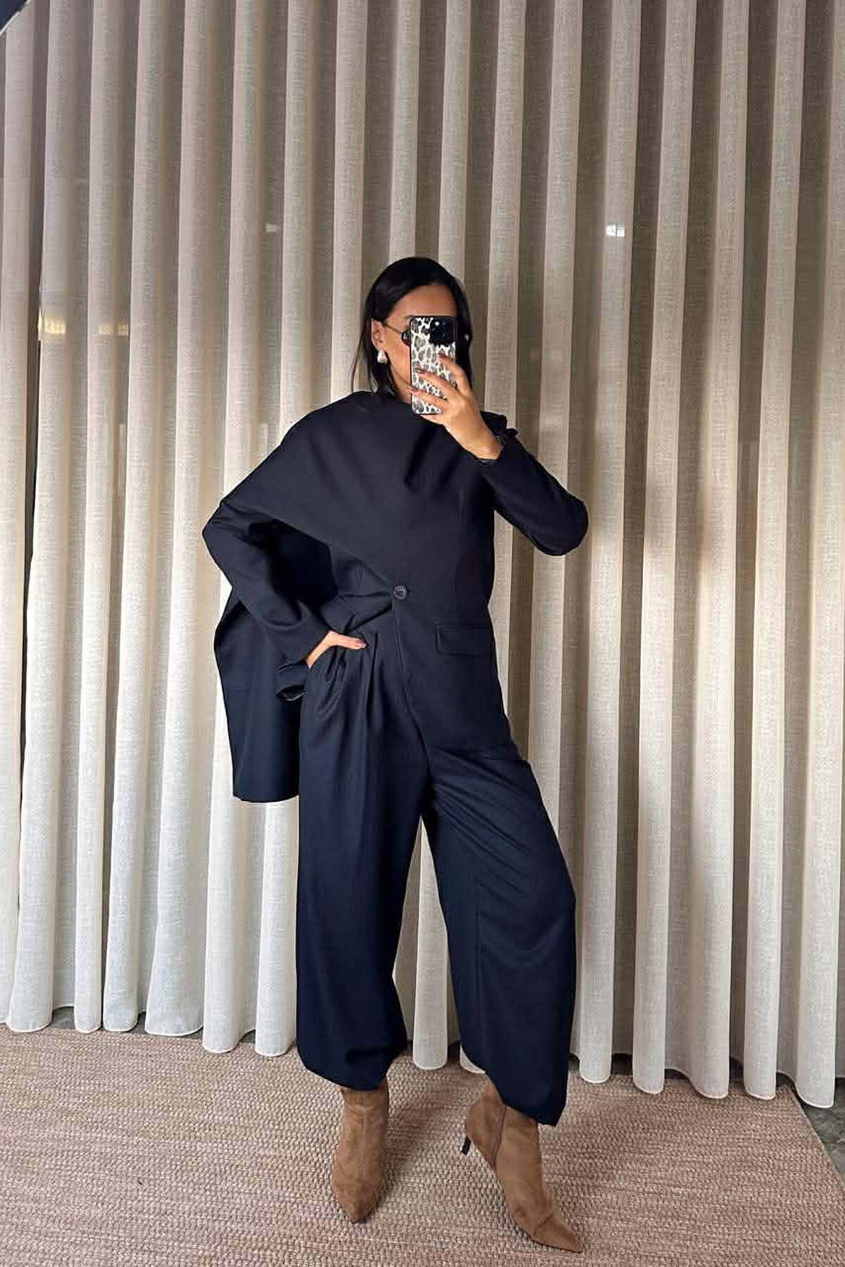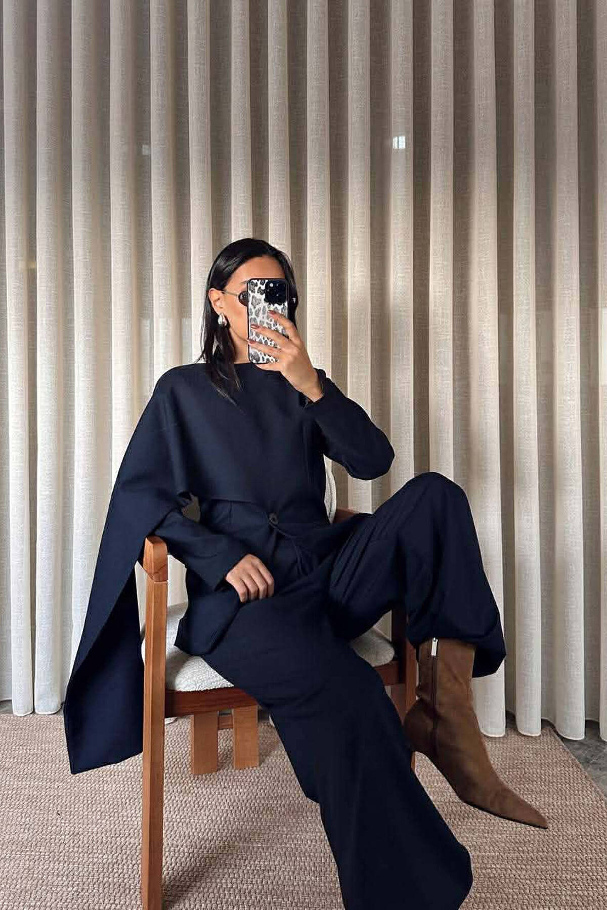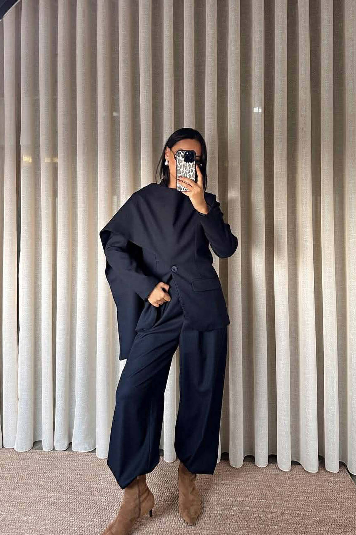 ONE COLOR SCARF DETAIL JACKET+TROUSERS WOMEN SET BEIGE/BEZHE