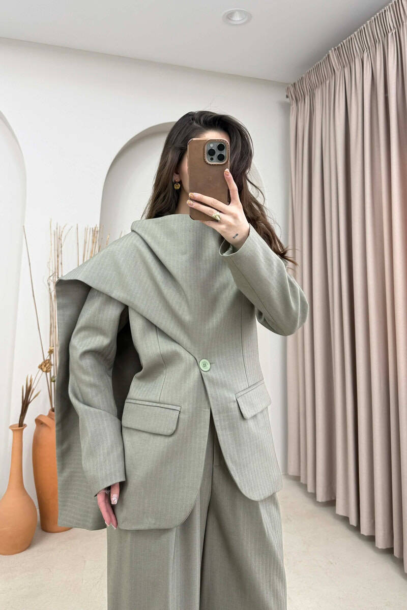 ONE COLOR SCARF DETAIL JACKET+TROUSERS WOMEN SET MINT/MENTE