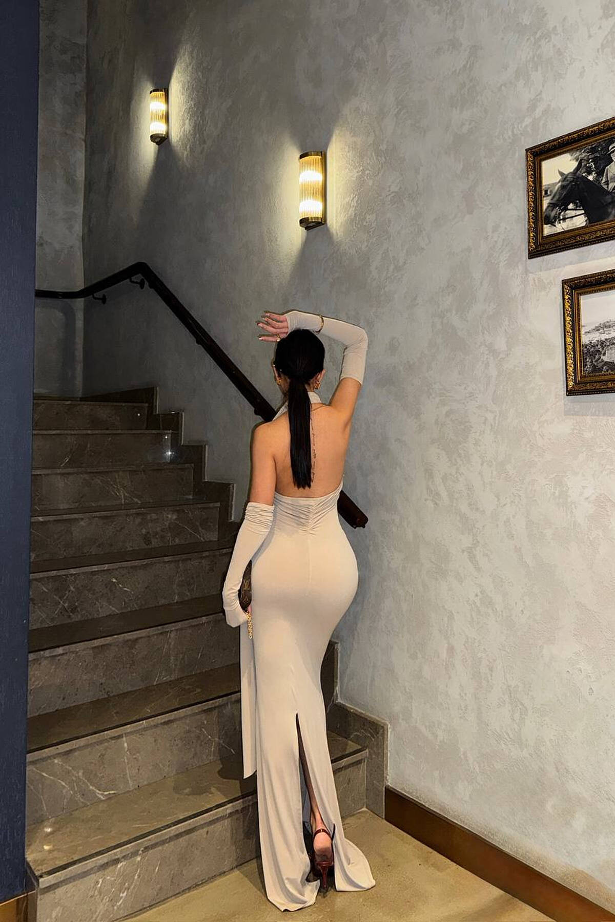 ONE COLOR SCARF DETAIL WOMAN DRESS BEIGE/BEZHE